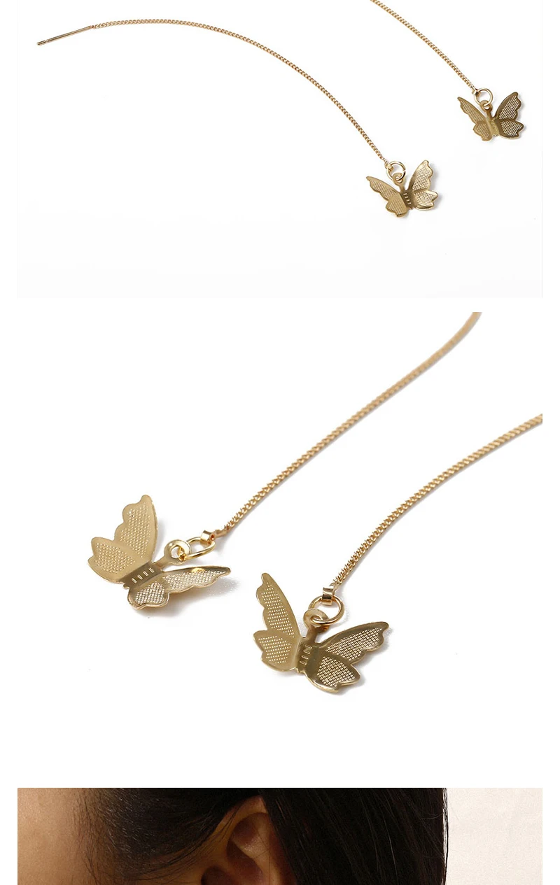 Маленькая бабочка кулон кисточка длинные серьги Ретро Золото Серебро Цвет Простой ушной линии серьги женские свадебные украшения