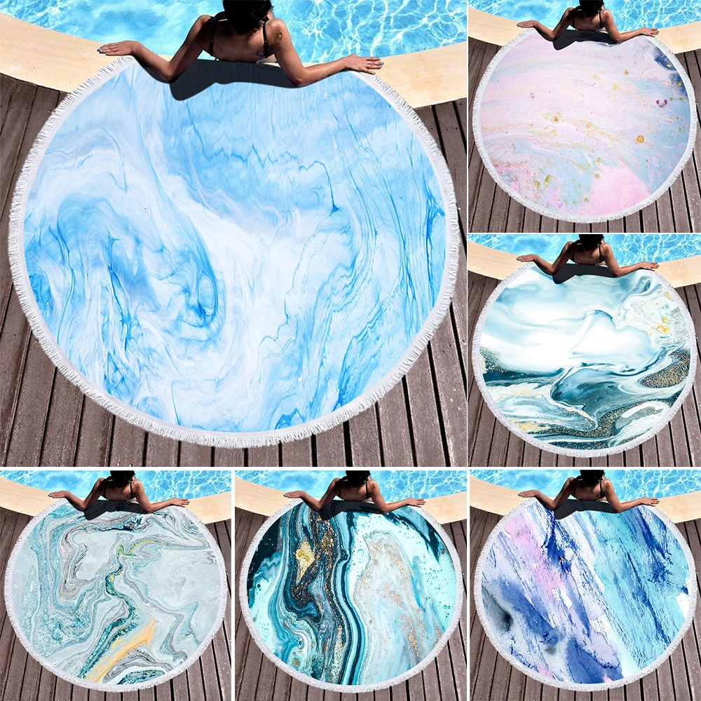 Круглое пляжное полотенце, абсорбирующее полотенце из микрофибры с мраморным позолоченным узором и 3D-принтом, пляжное полотенце с кисточками, s-одеяло, 2020