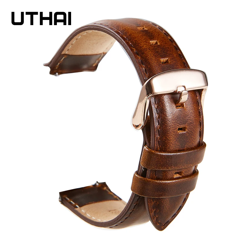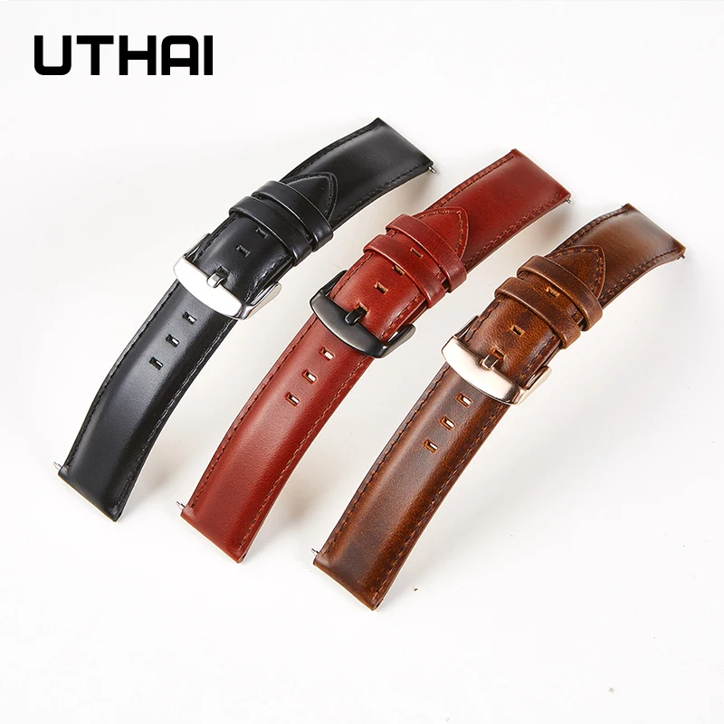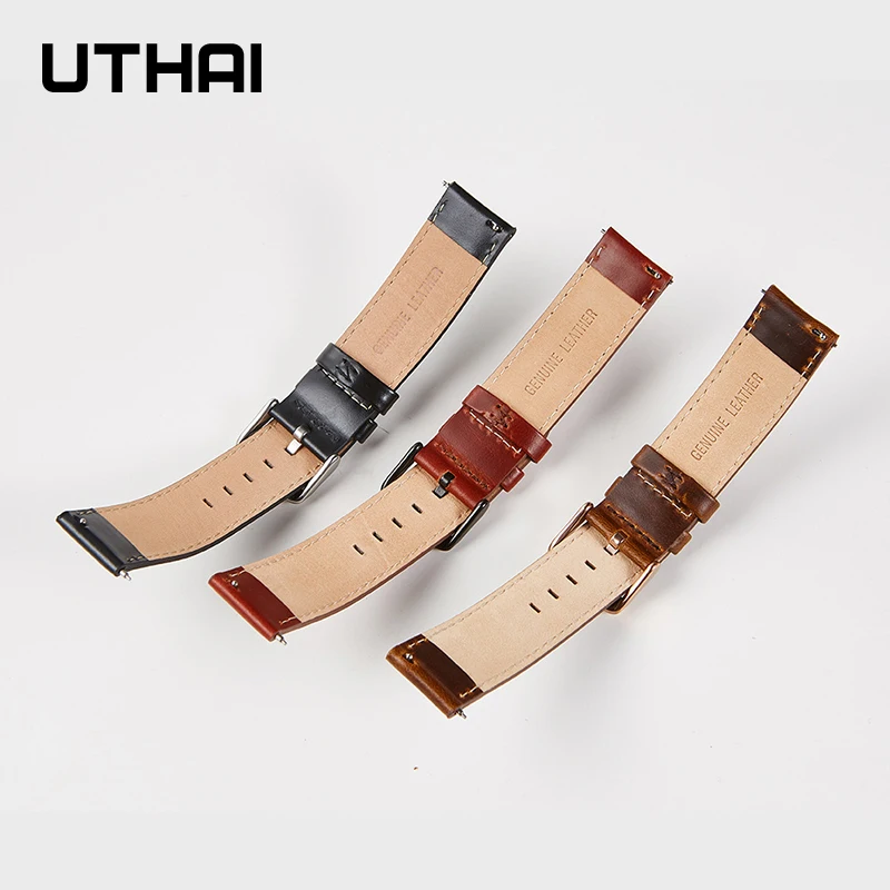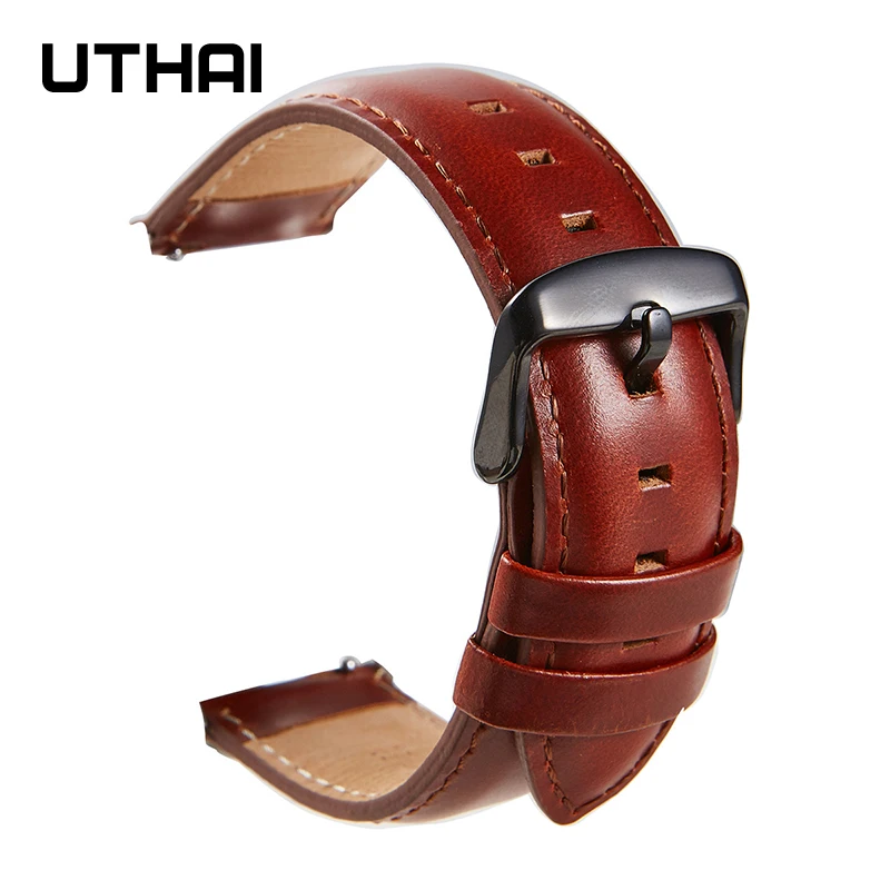 Ремешок UTHAI кожаный для наручных часов, быстросъемный пружинный браслет для Samsung galaxy watch 42 мм, 22 мм