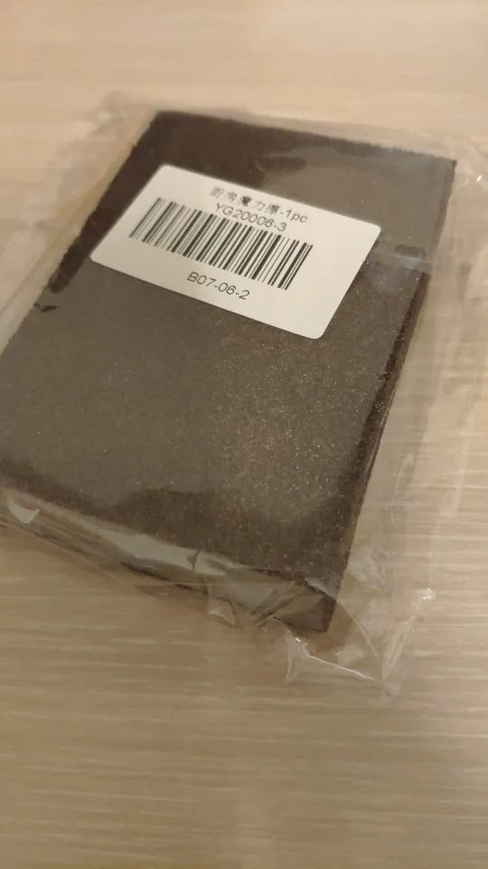 Обычная губка с покрытием с жестким покрытием как у наждачной шкурки. Посмотрим на сколько хватит.