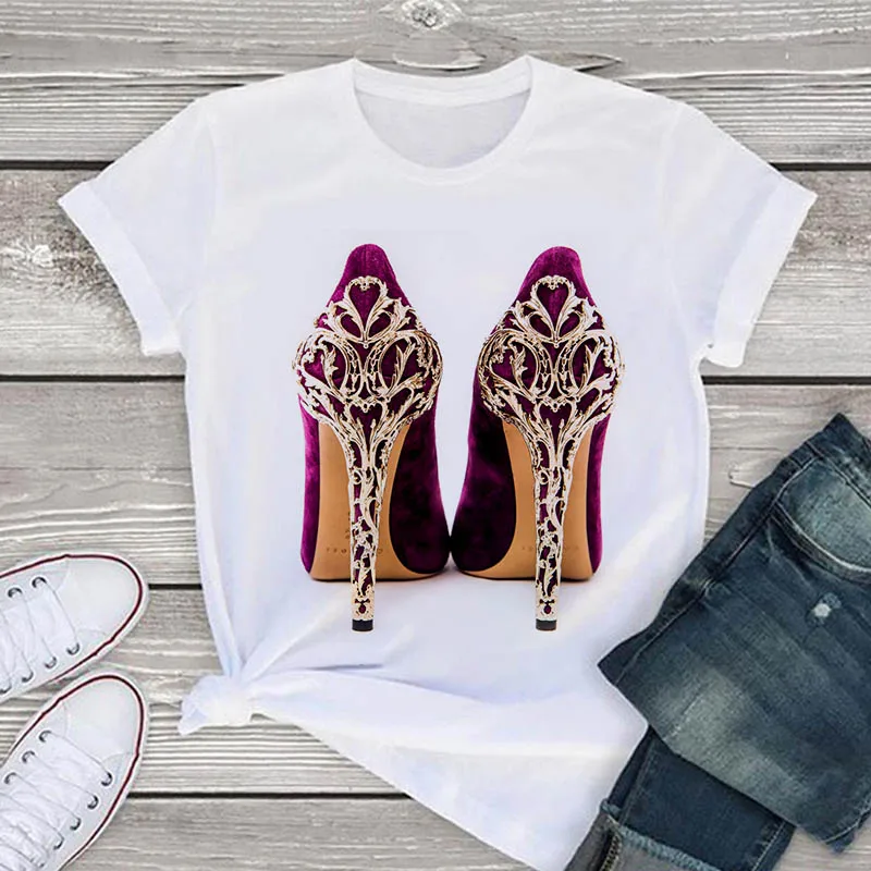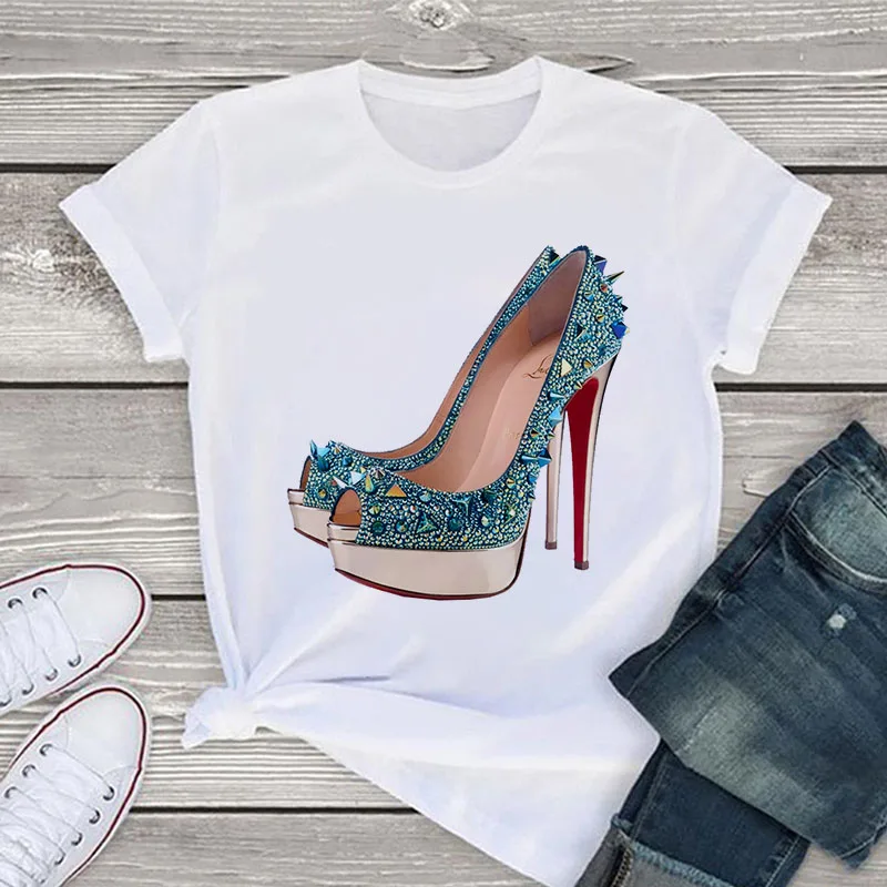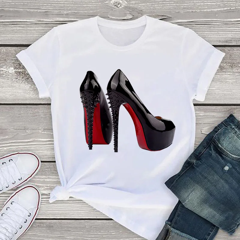 Белая футболка женская рубашка модная обувь на высоком каблуке Футб...