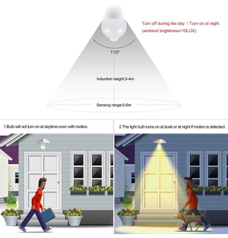 Светодиодная лампочка с датчиком движения, с автоматическим включением и выключением, ночсветильник для домашней парковки, AC85-265V, 12 Вт, 15 Вт, 18 Вт, 20 Вт