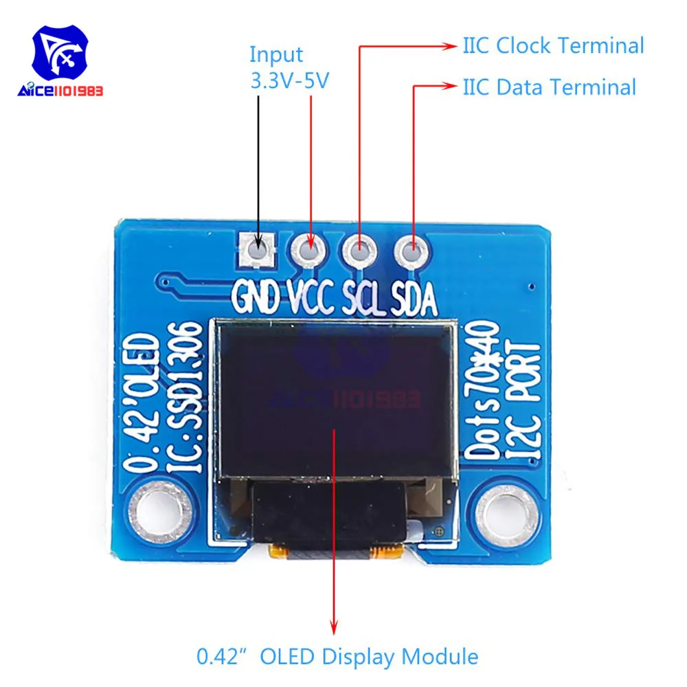 Модуль ЖК-дисплея diymore, 0,42 дюйма, 72x40, с интерфейсом IIC SPI, SSD1306, для Arduino AVR STM32 Raspberry Pi 3,3 В