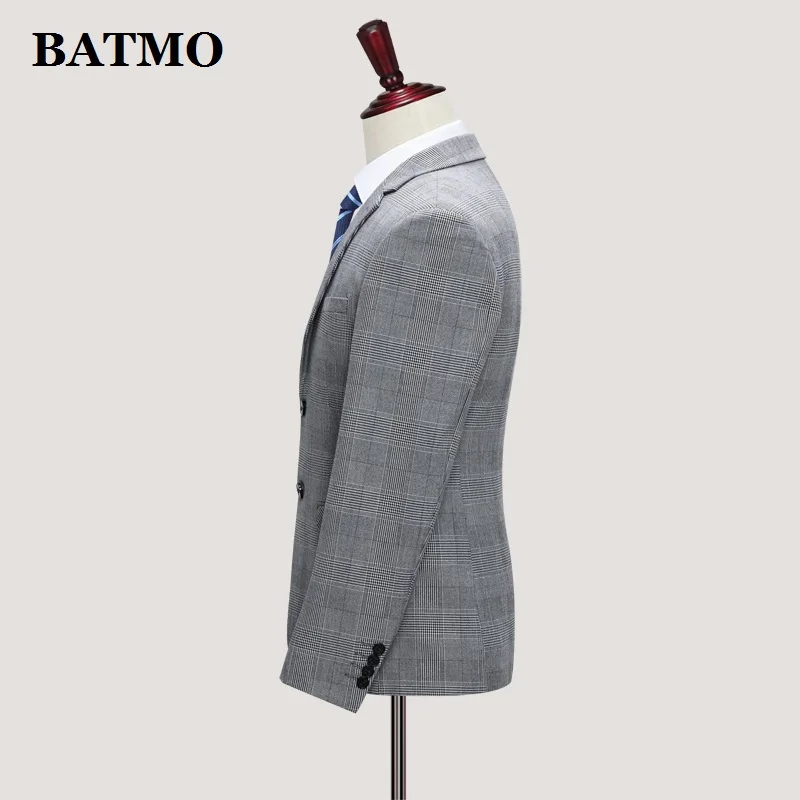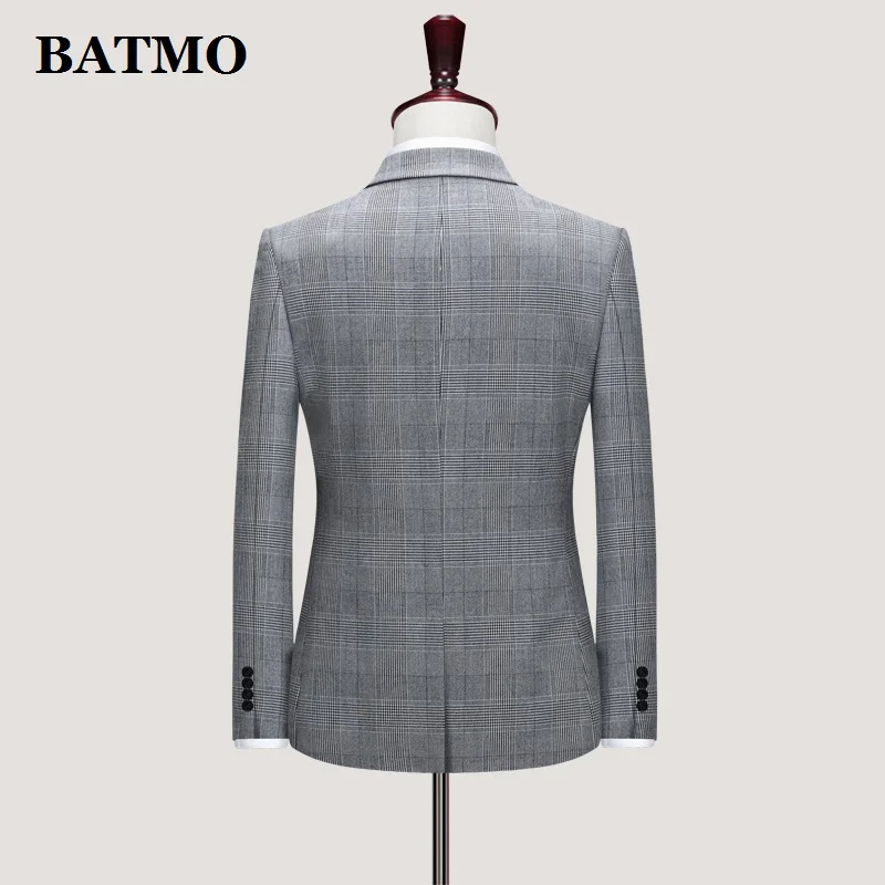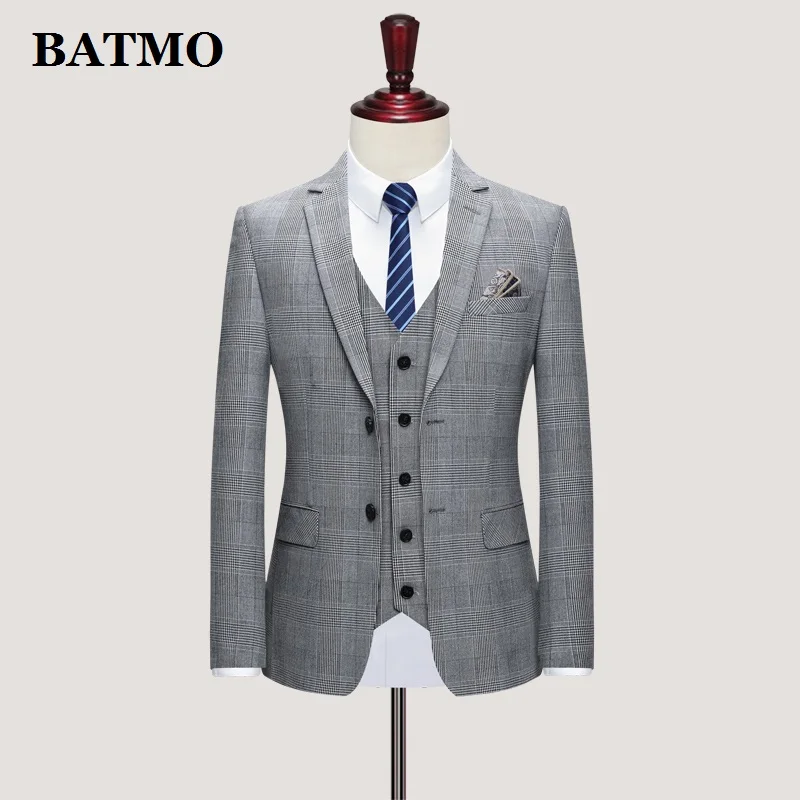 BATMO 2021 Новое поступление весенние клетчатые повседневные мужские костюмы, мужское свадебное платье, пиджак + брюки + жилет, SJT801