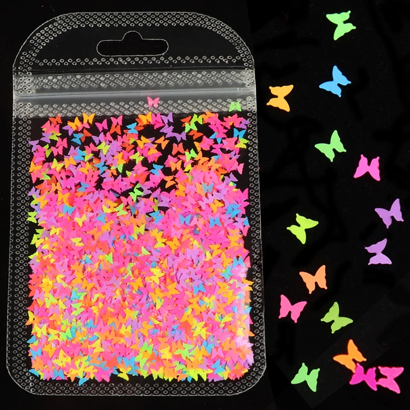 Флуоресцентные блестки в форме бабочки для дизайна ногтей