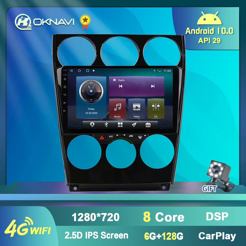 Автомагнитола для Mazda 6, мультимедийный DVD-плеер с GPS-навигацией, 6G, 128G, типоразмер 2DIN, для Mazda 6 2006-2013
