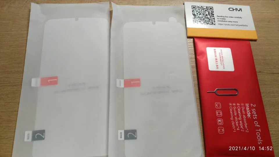 отлично упаковано, в отличии от других брендов приходит в жёсткой коробке, не помялось. быстро доставил. ещё не приклеил, но это не первая пленка Chyi, по качеству вопросов возникнуть не должно. молодцы! по комплектации тоже нет вопросов. 2 пленки (на экран и тыльную сторону, 2 комплекта салфеток и тряпочки для протирки, плотный скребок с qrкодом и инструкцией, в подарок скрепка для вытаскивания сим-карты)