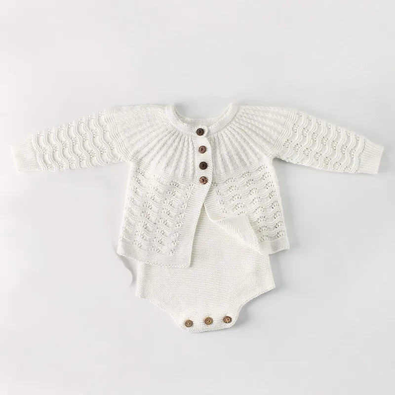 Вязаная одежда для маленьких девочек, белый комбинезонкардиган, цел...