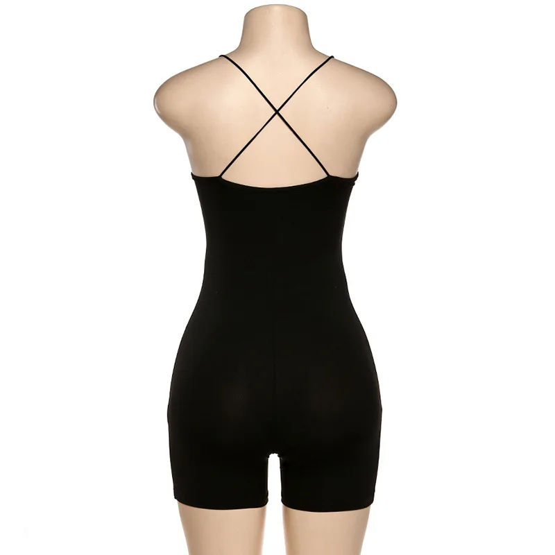 Черные обтягивающие женские Комбинезоны на тонких бретельках без рукавов для уличных женщин, облегающие боди для бара и клуба, винтажные женские комбинезоны