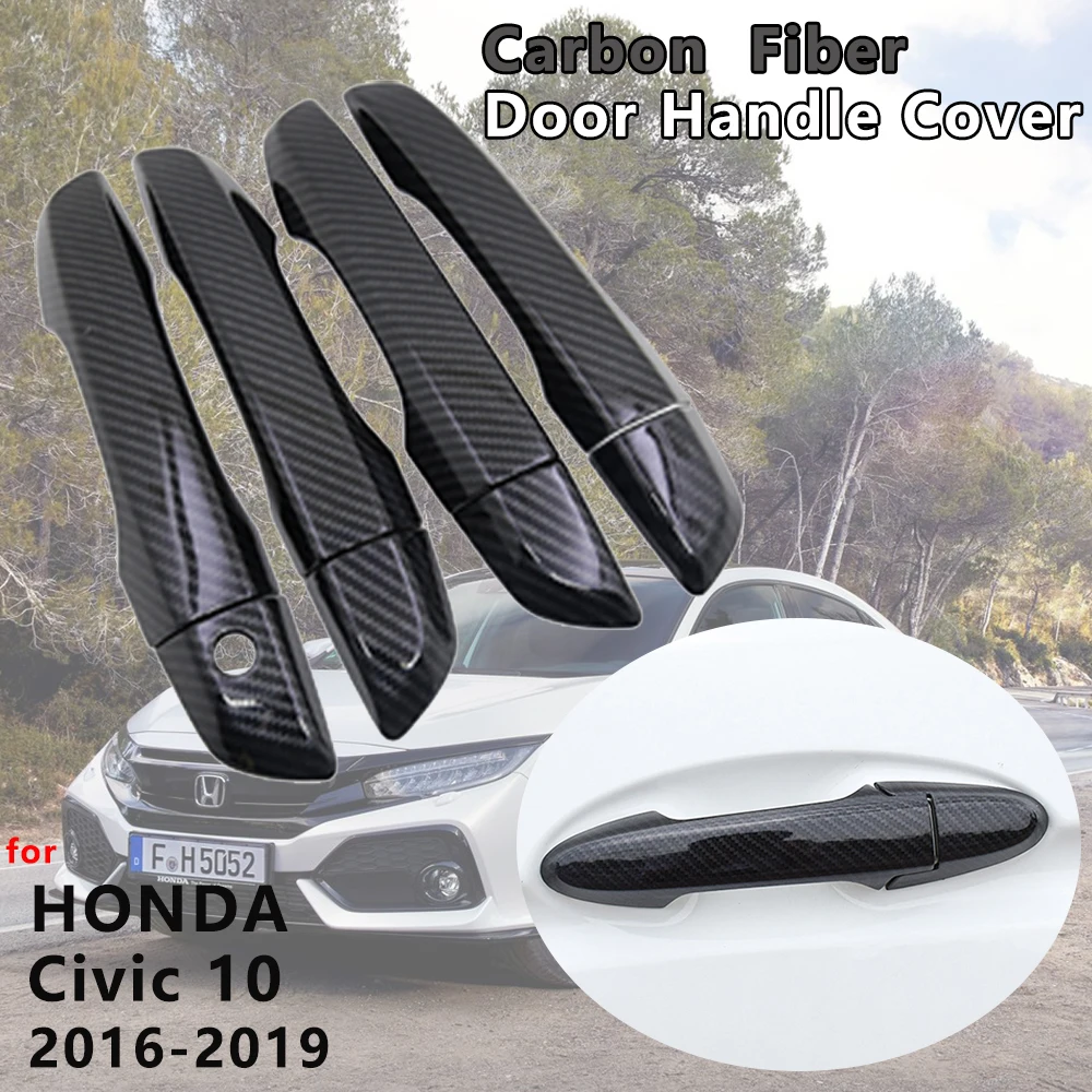Для Honda Civic 10 2016 2017 2018 2019 2020 4 шт., наружная крышка дверной ручки из углеродного волокна, накладка на крышку автомобиля, аксессуары для стайлинга