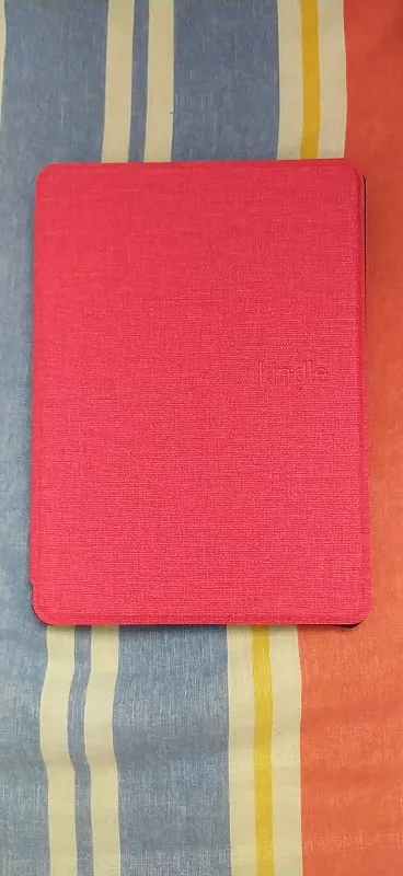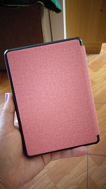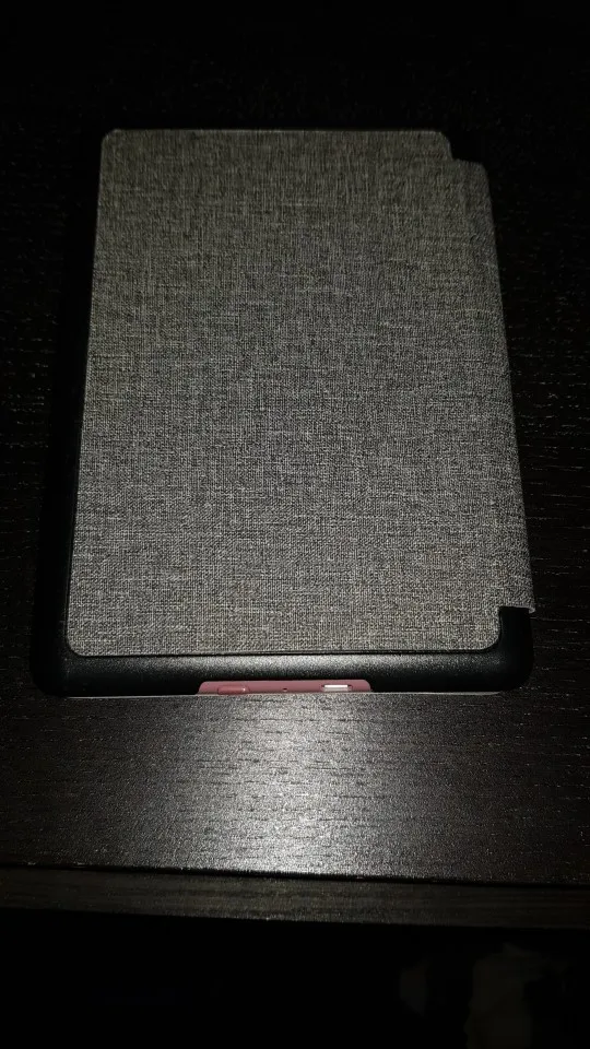 Чехол приятный и плотно прилегает к kindle. Цвет достаточно хорошо подходит на фотографиях, а искусственная кожа очень приятная и выглядит почти как ткань. Функция пробуждения/сна работает. В целом, это очень хороший чехол, и я могу легко порекомендовать его всем, кто ищет простой чехол kindle.