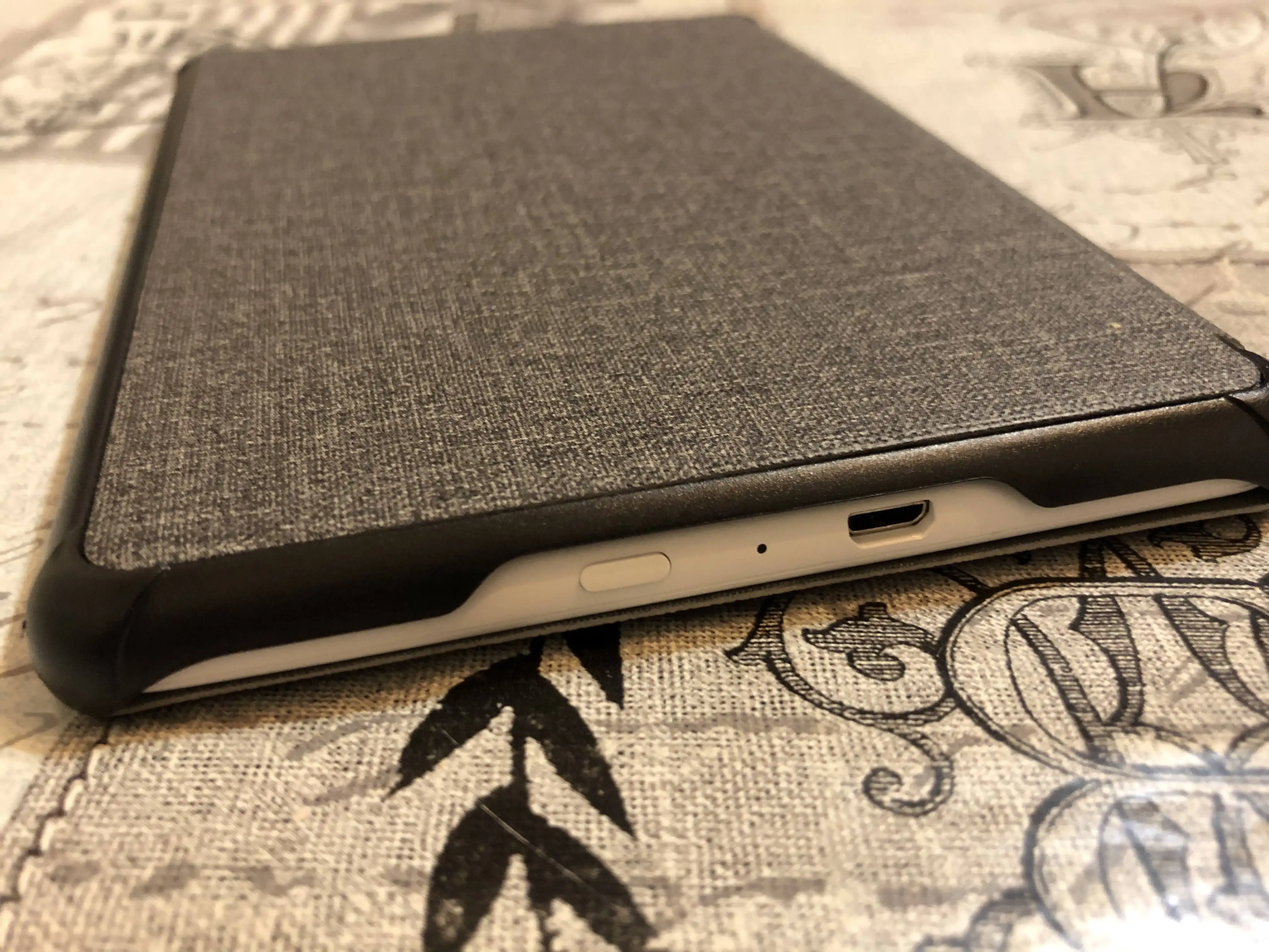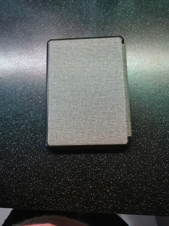 Чехол очень хорошего качества и очень красивый, серый цвет очень хорошо сочетается с белым в моем Kindle. Ткань с покрытием Красивая и выглядит жесткой, кроме того, это не материал, где остаются пятна и пятна пальцев. Детали выгравированного логотипа Kindle очень хорошо обработаны. Внутренняя часть чехла бархатистая, тем самым защищая экран Kindle. При открывании и закрытии Kindle автоматически разблокируется. Также внизу у вас все еще есть доступ к кнопке и зарядному порту. Кружево идеально подходит без сколов.