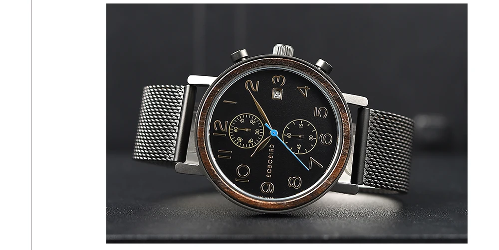Мужские деревянные часы relojes hombre BOBO BIRD, многофункциональные часы с автоматической датой, браслет из нержавеющей стали, юбилей, Прямая поставка, персонализированные