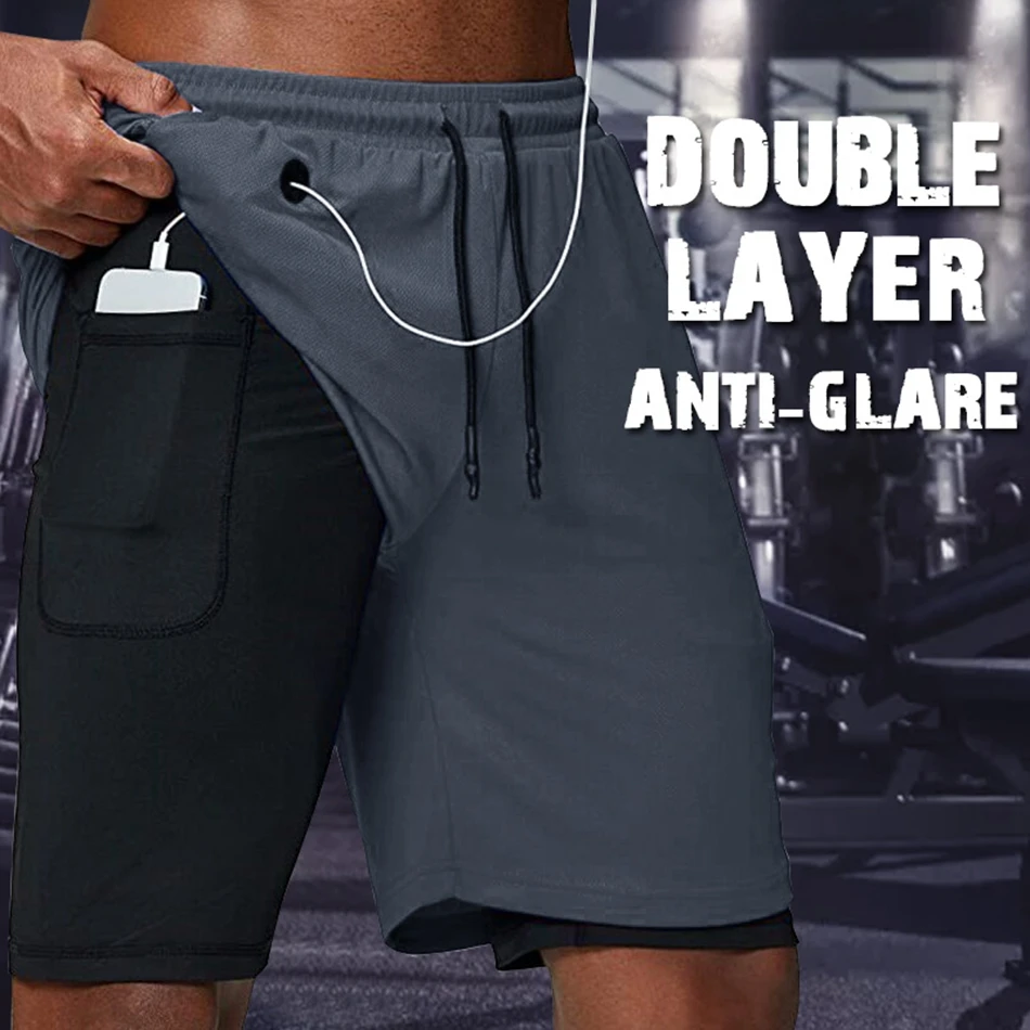 Мужские шорты для бега, мужские спортивные шорты для фитнеса, тренажерного зала, быстросохнущие спортивные шорты для тренировок в тренажерном зале, спортивные тренировочные двухуровневые летние мужские шорты, 2021