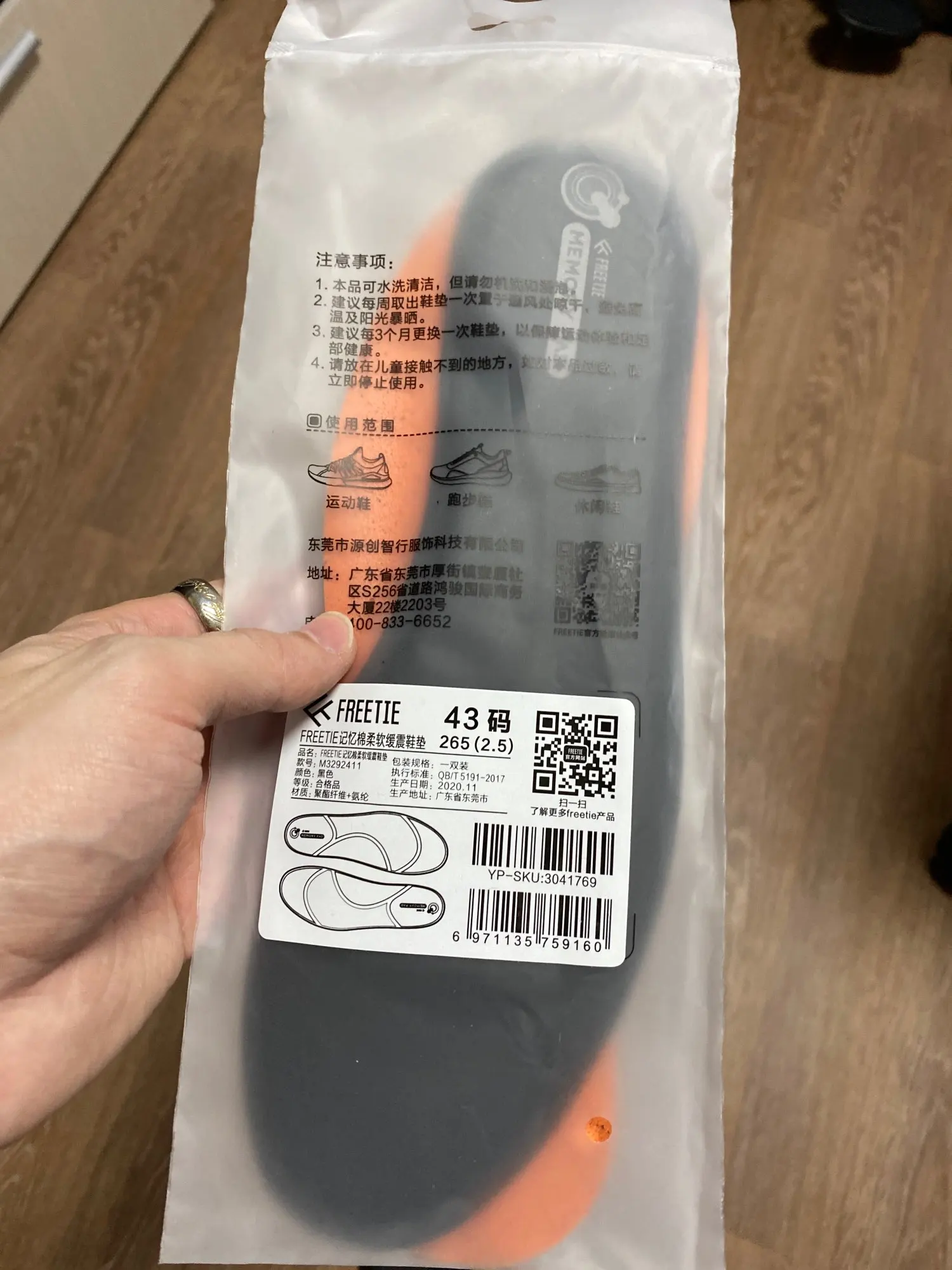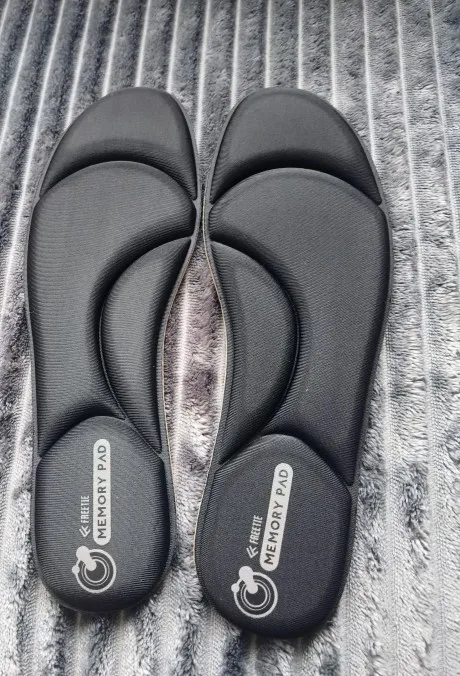 Постирал кроссовки, и старые стельки от сушки сжались на 5 размеров, а эти сменные - спасли. Размер совпал с кроссовками 1:1. К подушечкам пока не привык, посмотрим. Правда, в fix price можно было купить и более простые.