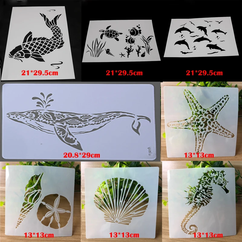 8 шт. трафареты для морской жизни многоразовые DIY Скрапбукинг Фотоальбом Декоративные пули дневные трафареты