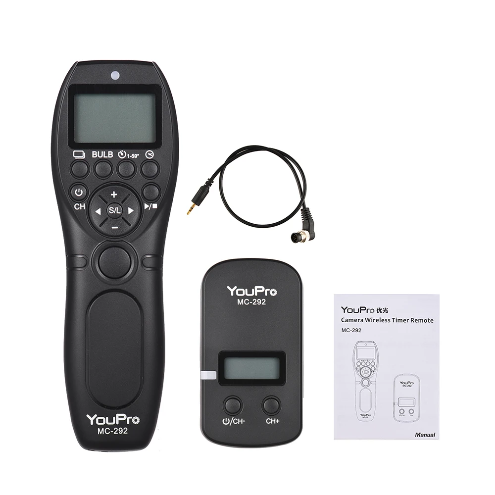 MC-292-это высокопроизводительный беспроводной пульт дистанционного управления таймером. Доступен вариант проводной или беспроводной в одиночном, низкоскоростном/высокоскоростном непрерывном режиме, лампочка, задержка съемки и таймер планирования режима съемки.