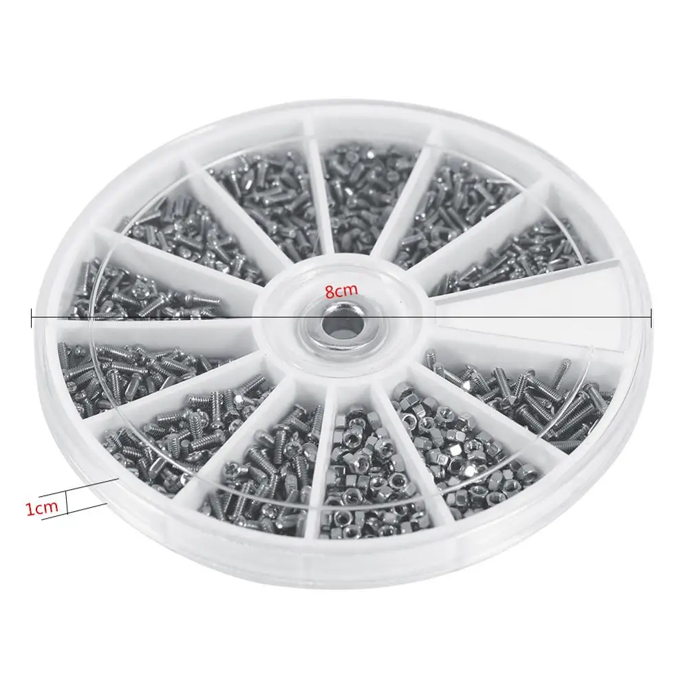 12 видов небольших винтов и гаек ассортимент комплекта, M1 M1.2 M1.4 M1.6 доступен. Всего 600 шт., и вы можете использовать их довольно долго. Хорошо Упакованные и ассорти в пластиковой коробке, не нужно беспокоиться о повреждении или расстройстве. Хороший ассортимент винтов. Дизайн коробки хороший и легко взять правый винт. Отлично подходит для часов, очков, электроники или другого ремонта, который требует небольших винтов.