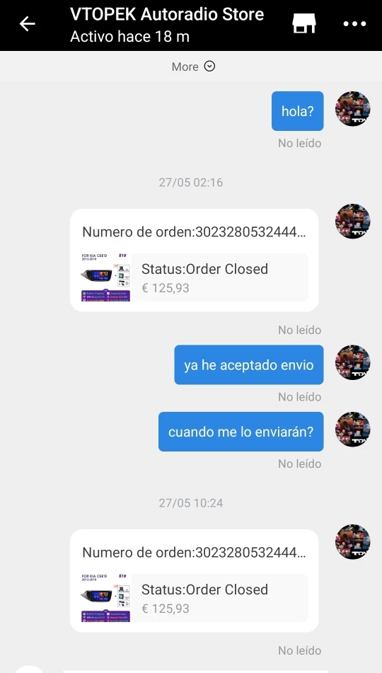 Этот продавец является лучшим мошенником или мошенником AliExpress. Он продает андроид радио, если он проверен и выше, что когда вы подключаете экран, он выглядит пустым, сверху вы требуете возврата, и он говорит вам Он посылает вам еще один радиоприемник, но удаляет претензию... и это ложь для вас, чтобы сделать время, чтобы закончить срок поставки и не возвращать ваши деньги или другие радиоприемники. Ojooo с тем, что вы купили, и не быть другим жертвой, как я был.