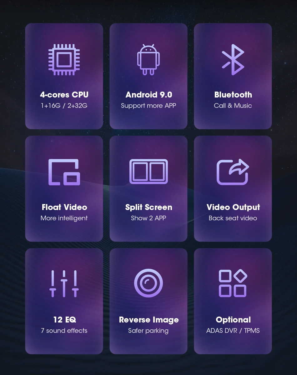 По сравнению с оригинальным автомобилем, экран больше, цвета более яркие, и он поддерживает просмотр под разными углами. Новая рама сделана в соответствии с оригинальным автомобилем, который идеально сочетается с вашим автомобилем и прост в установке.