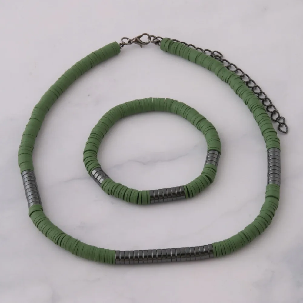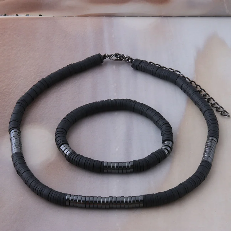 Набор из браслета и ожерелья NeeFu WoFu, черная руда, богемные флуоресцентные браслеты для женщин, этнические ювелирные изделия из нержавеющей стали