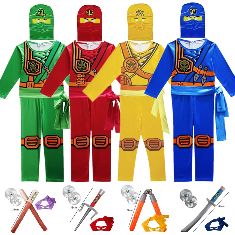 Костюмы для косплея Ninjago, комбинезон для мальчиков и девочек, комплект оружия, аниме косплей, детская одежда для Хэллоуина и рождественской вечеринки
