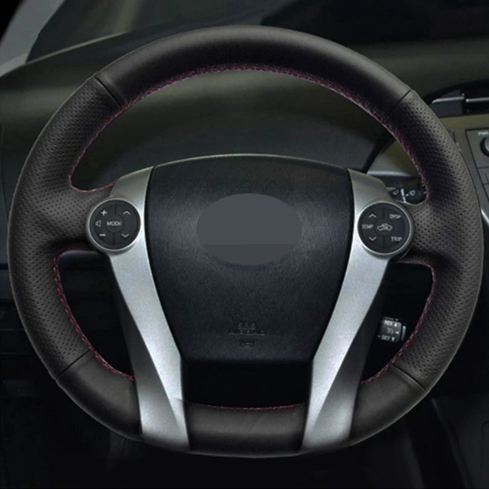 Чехол рулевого колеса автомобиля DIY черная искусственная кожа для Toyota Prius 2009-2015