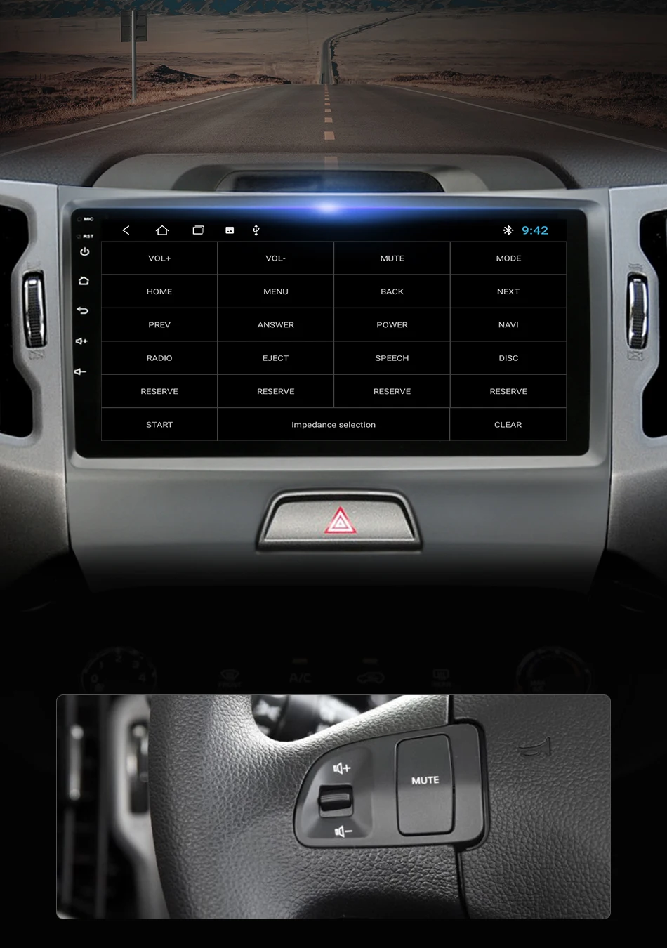 Поддержка управления рулем оригинального автомобиля. Для первого использования версии без canbus требуется ручное обучение клавишам. Версия с canbus может использоваться после проверки и подключения canbus.