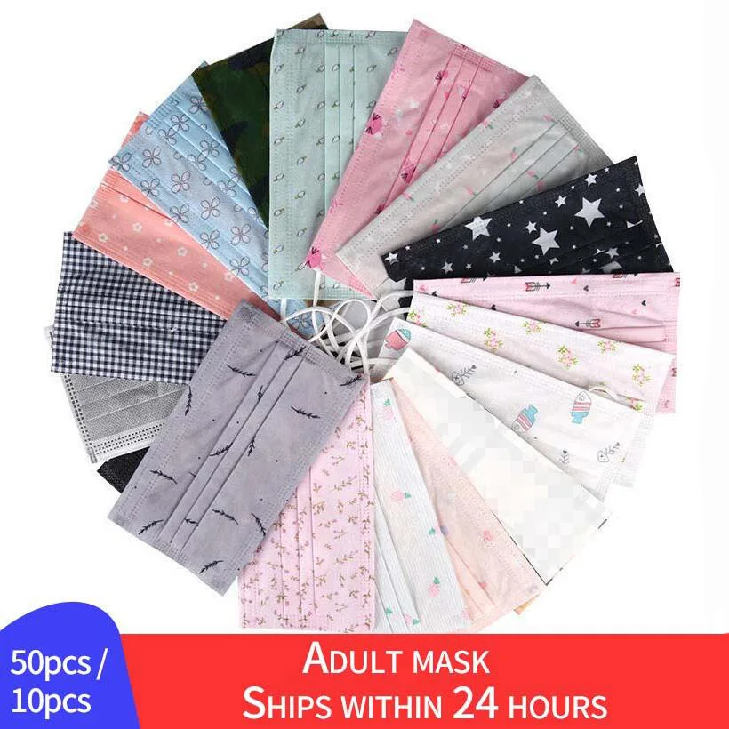 Маска для рта с 3-слойным фильтром для взрослых, одноразовая Защитная Нетканая с ушной петлей и защитой от пыли, 50 шт.10 шт.