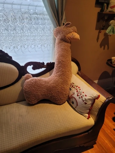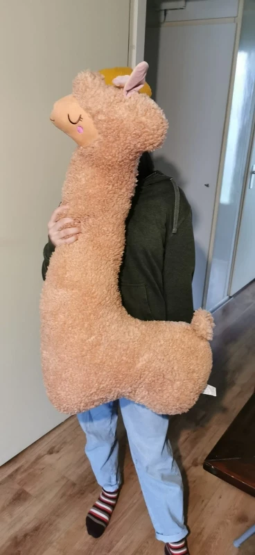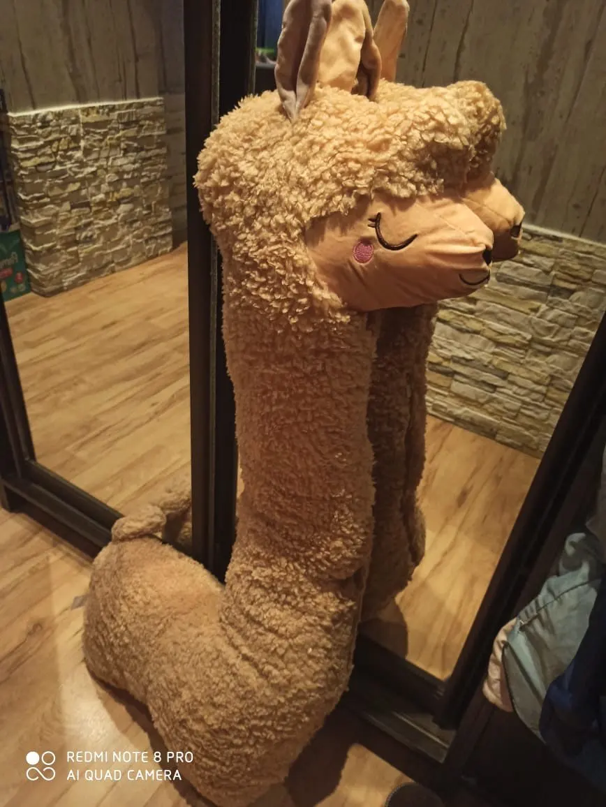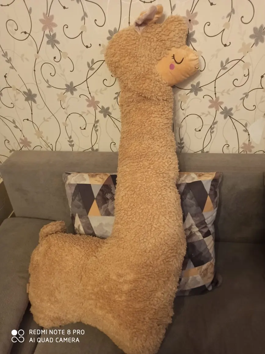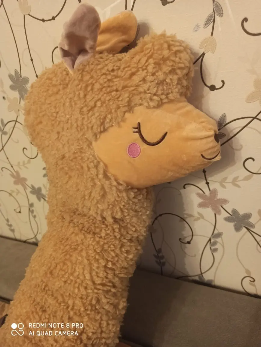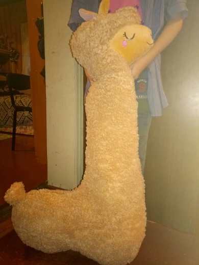Опупенная лама, так удобно с ней спать и она такая мягенькая, просто класс, все соответствует описанию, берите не пожалеетепришла за чуть больше месяца