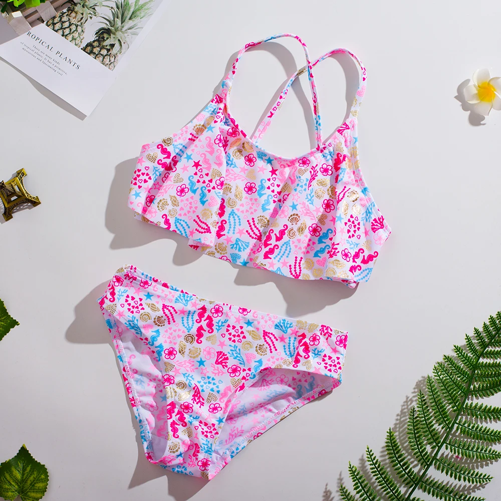 Купальник для девочек, новинка 2020, детский купальник, От 3 до 10 лет, комплект бикини для маленьких девочек, детский купальник, высокое качество, детская Beachwear-ST217