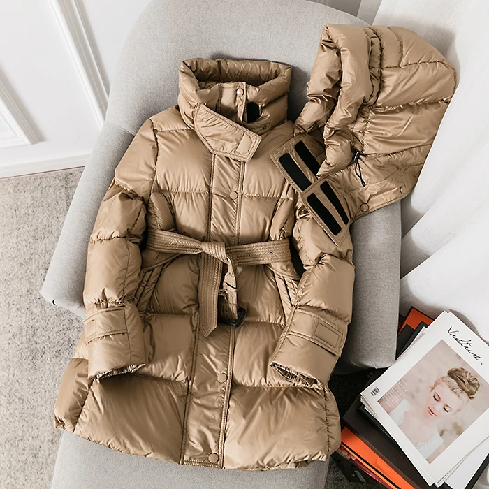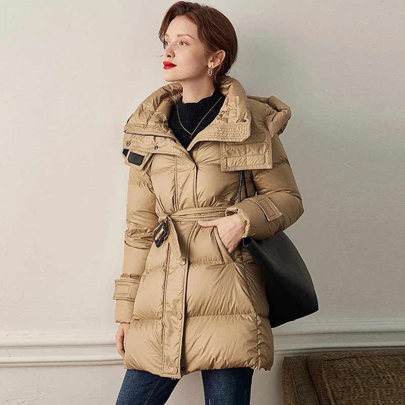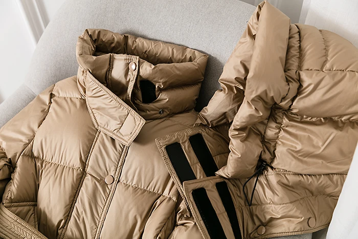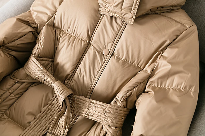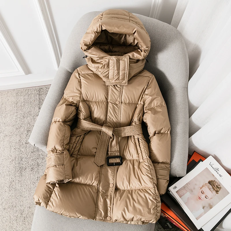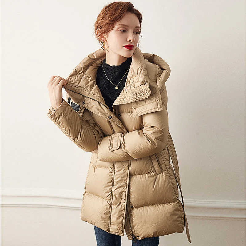 Пуховик женский зимний с капюшоном, на белом утином пуху