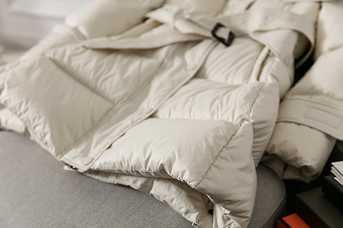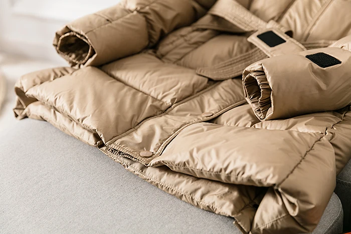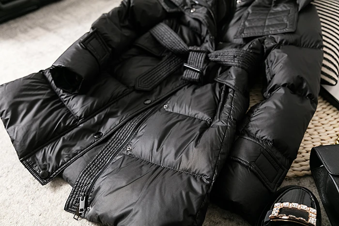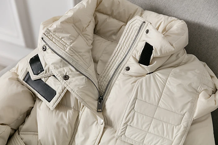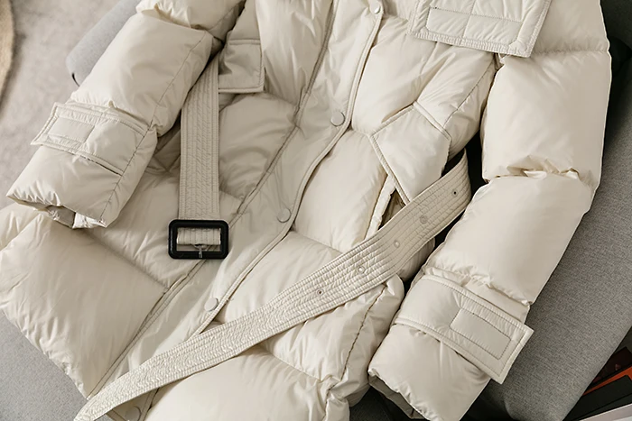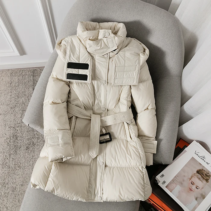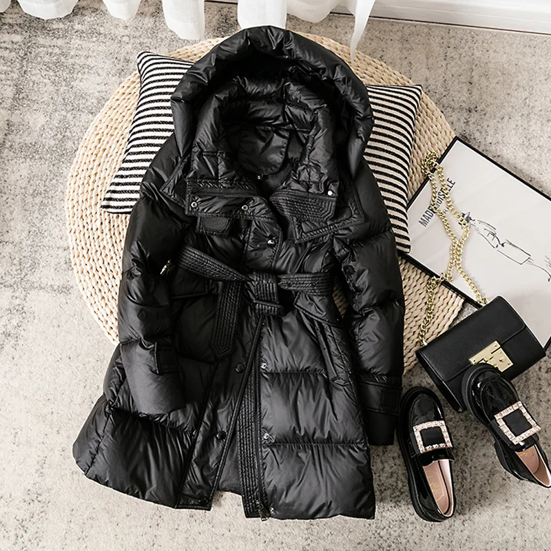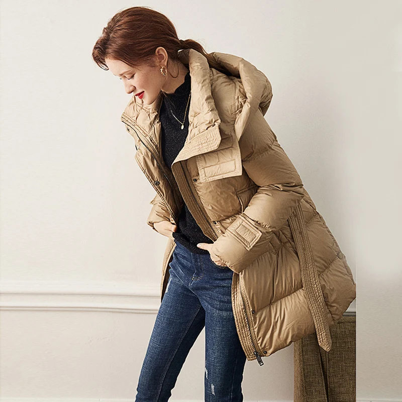 Пуховик женский зимний с капюшоном, на белом утином пуху