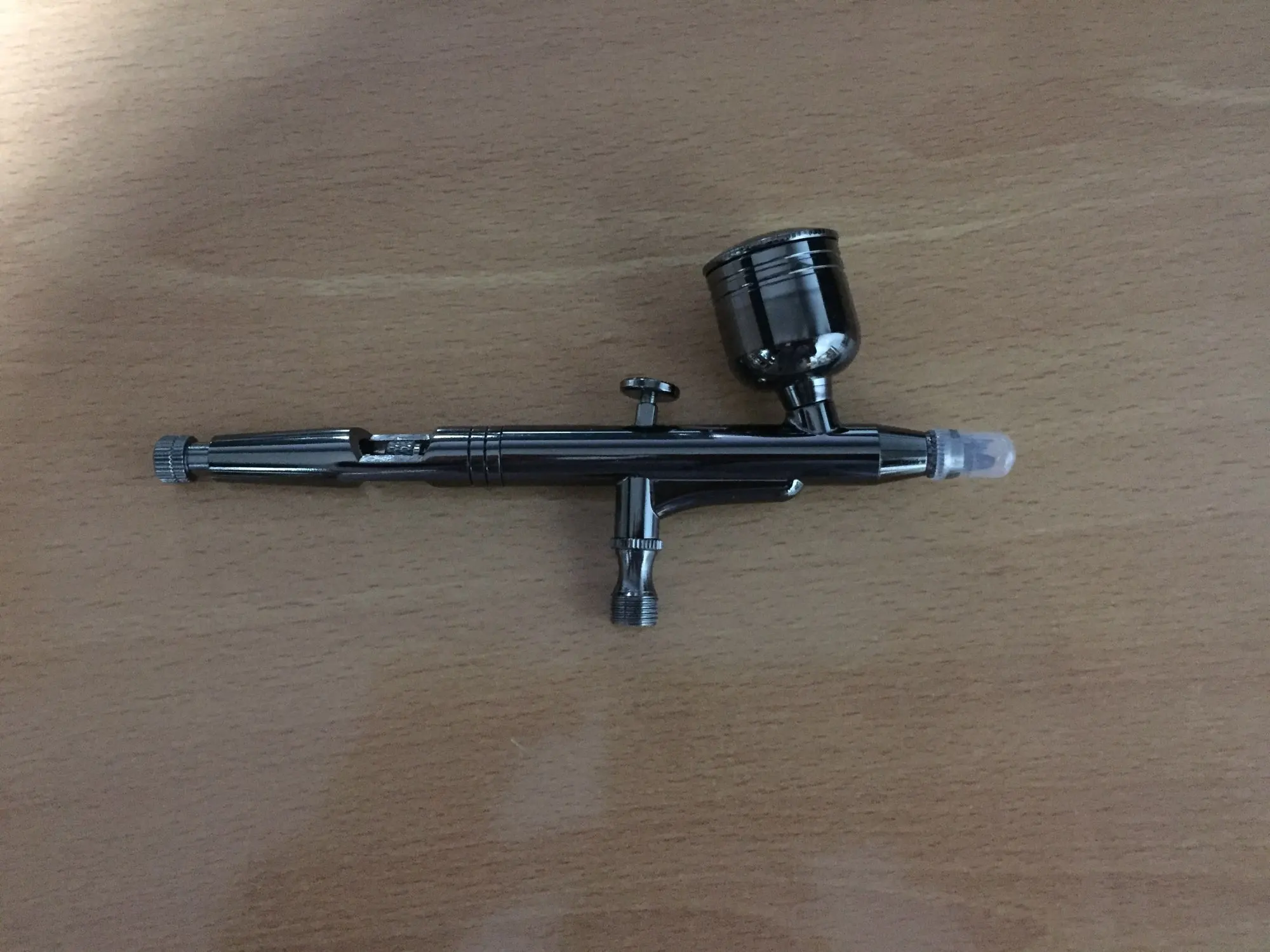товар пришел, внешне все цело, компрессор работает, красить пока не пробовали, так как не понятно какая крутилка за что отвечает, инструкции в аэрографу нет