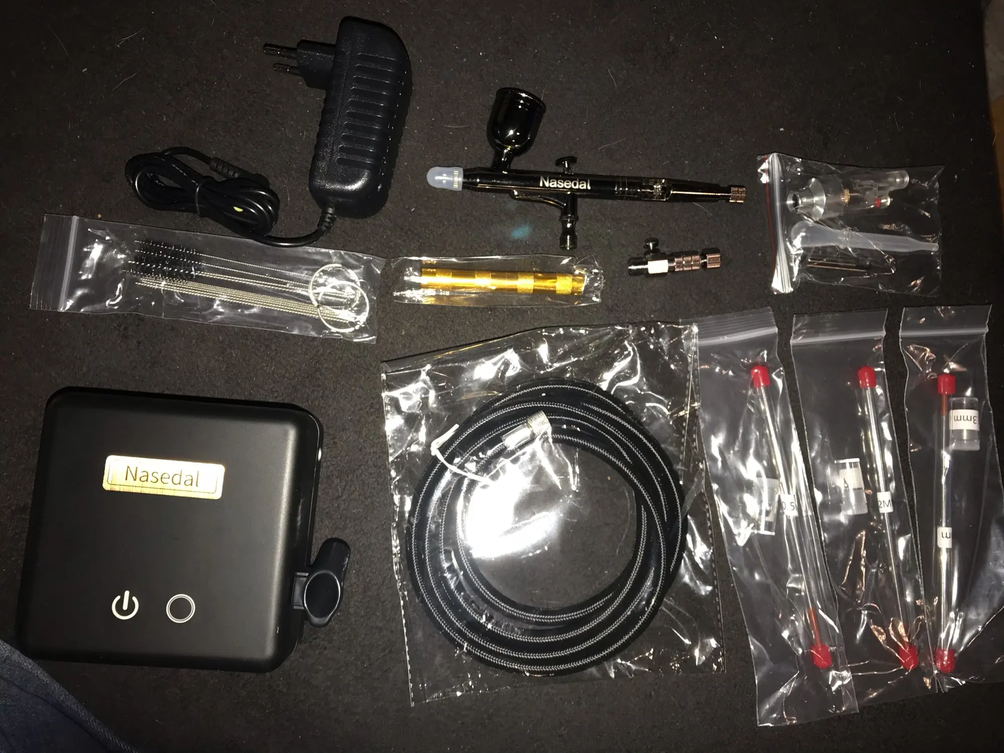 Отличный Набор Аэрограф по цене. Прибыл раньше. К сожалению, воздушный компрессор был поврежден во время доставки. Продавец осуществил частичный возврат средств. Лучший продавец. Настоятельно рекомендуется.