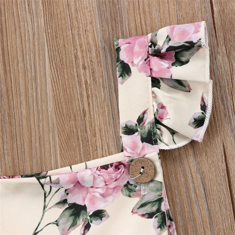 Комбинезон для новорожденных девочек с цветочным рисунком, на бретелях, ползунки с оборками