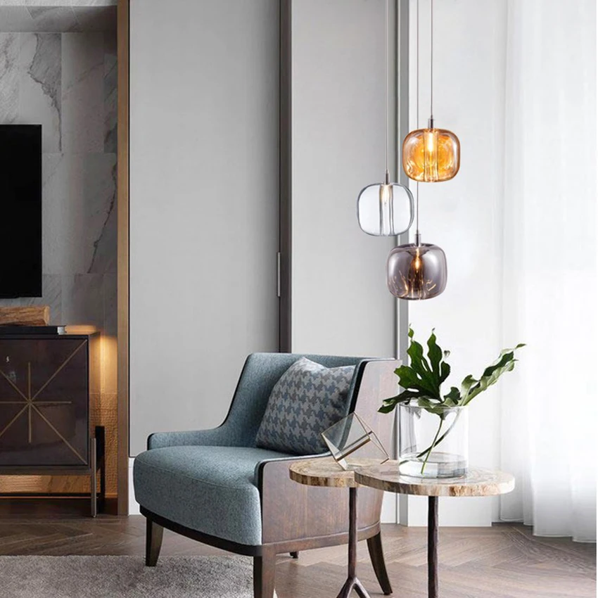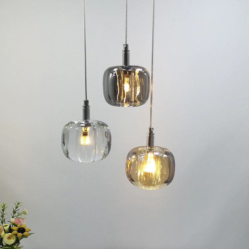 Роскошные хрустальные подвесные светильники в скандинавском стиле, Прозрачное освещение для кровати спальни, гостиной, столовой, освещение серого цвета