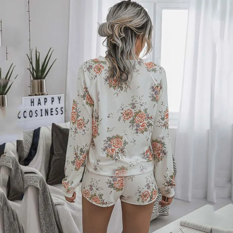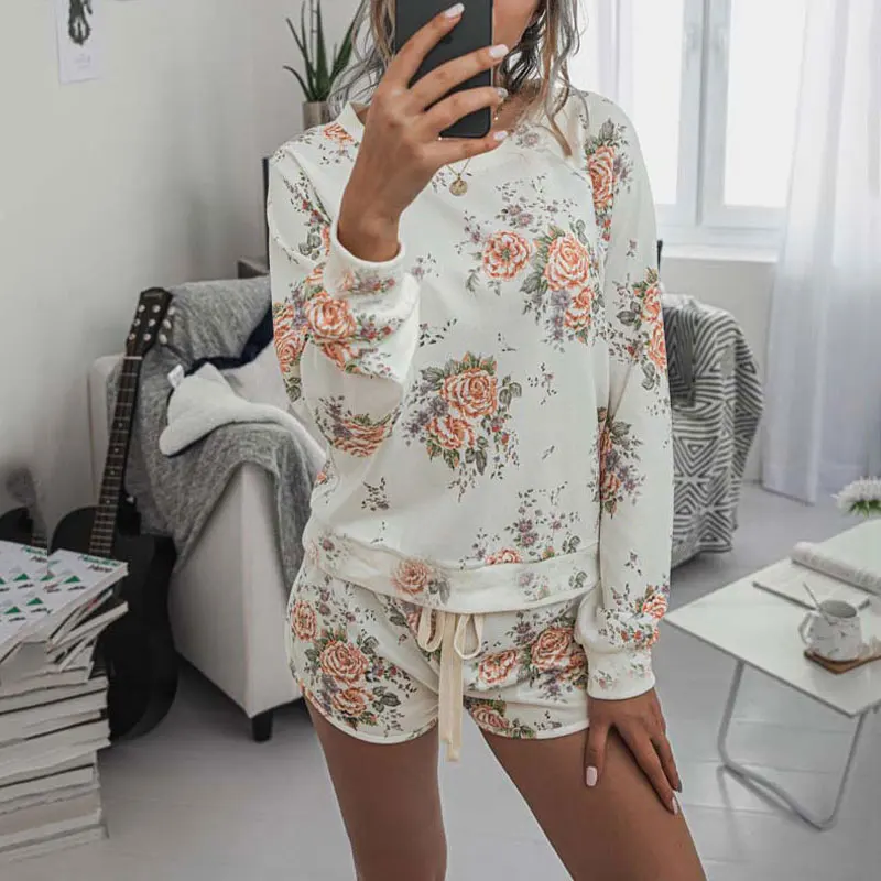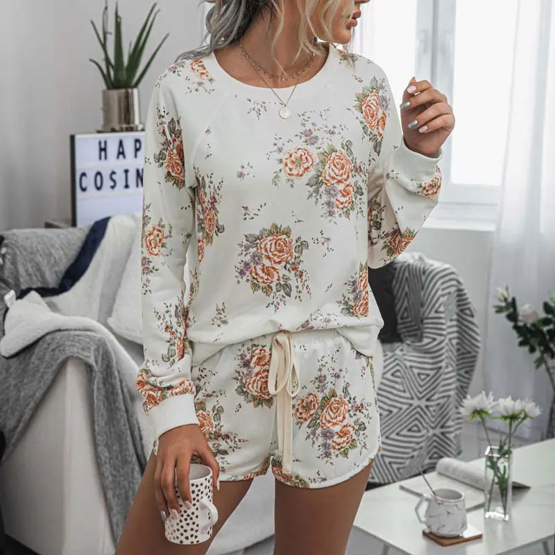 Пижамный комплект Женский, с цветочным принтом, Леопардовый, с длинным рукавом, домашняя одежда для отдыха, осень 2021