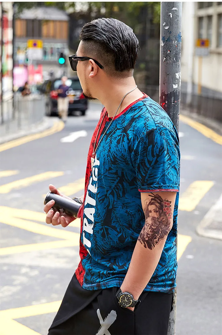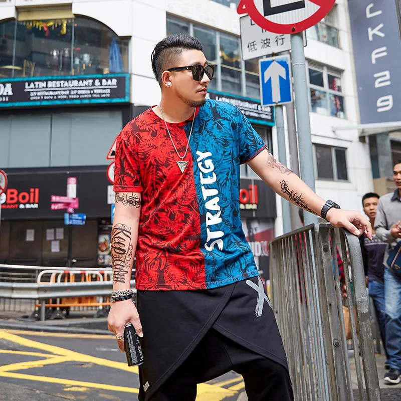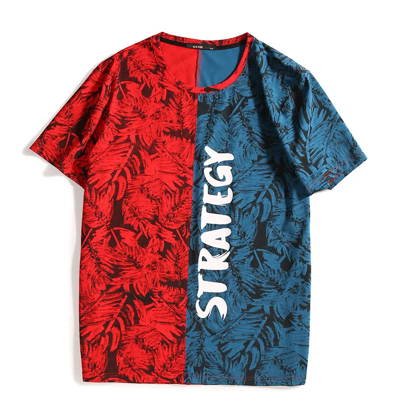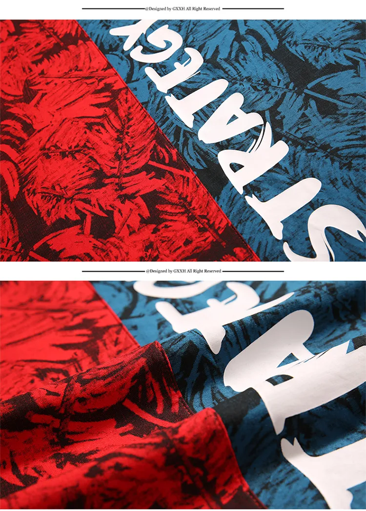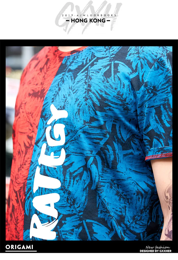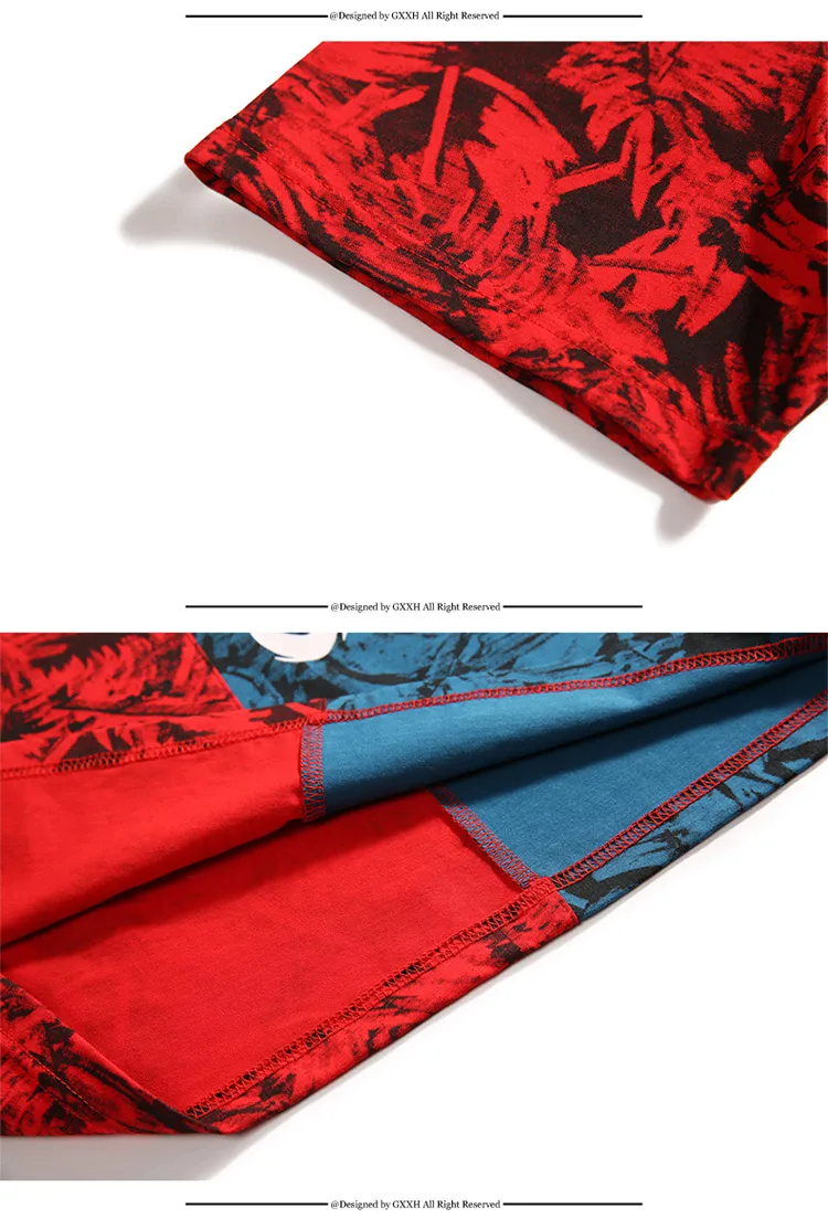 GXXH 2021 летняя хлопковая футболка, Мужская свободная стильная красная синяя футболка в стиле пэчворк, мужские футболки с коротким рукавом, футболка оверсайз, Мужская футболка