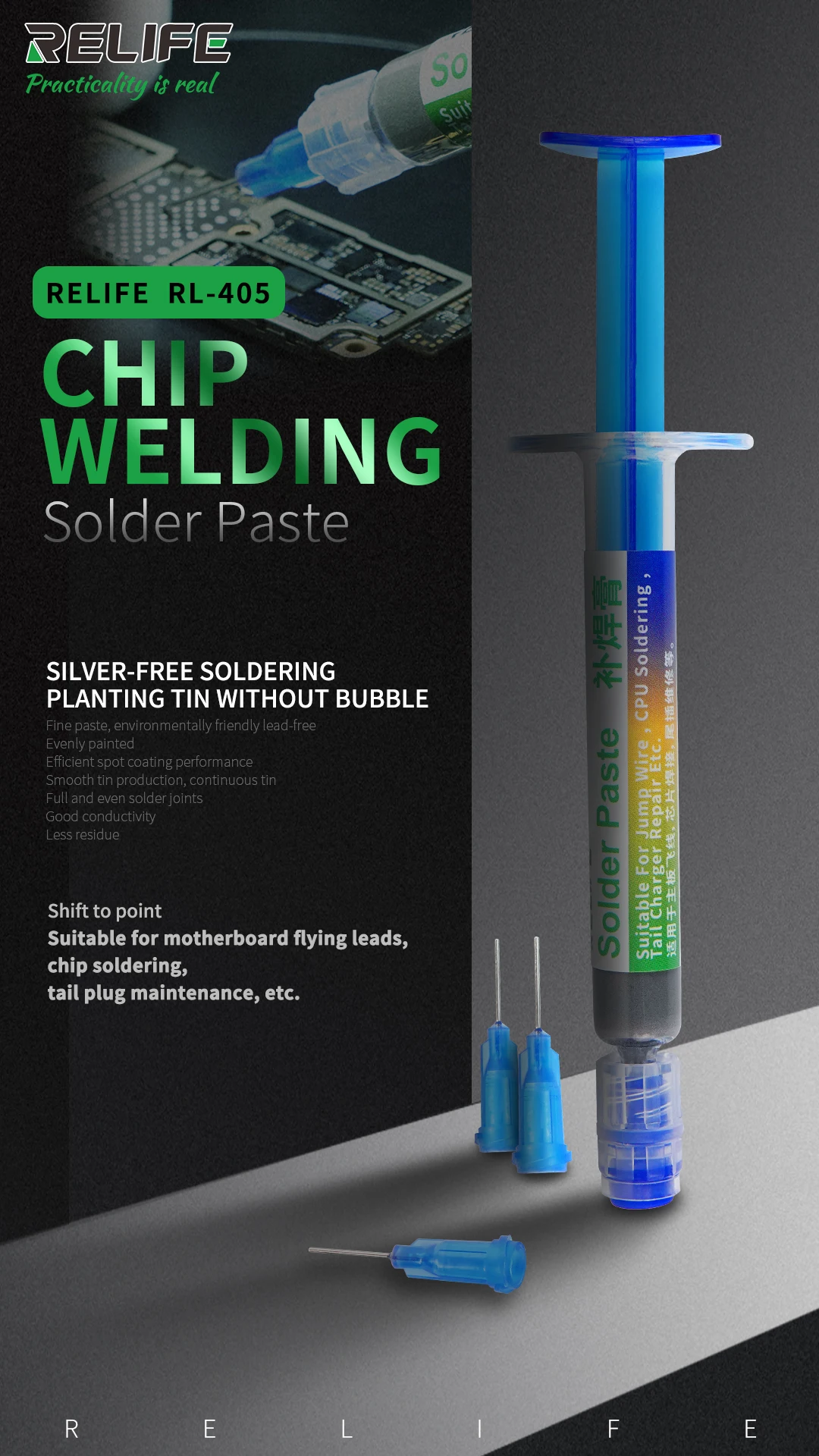 Паяльная паста RELIFE RL-405, игловая трубка для ремонта материнской платы, процессора, без свинца, с низкой температурой