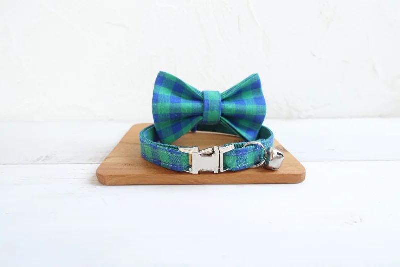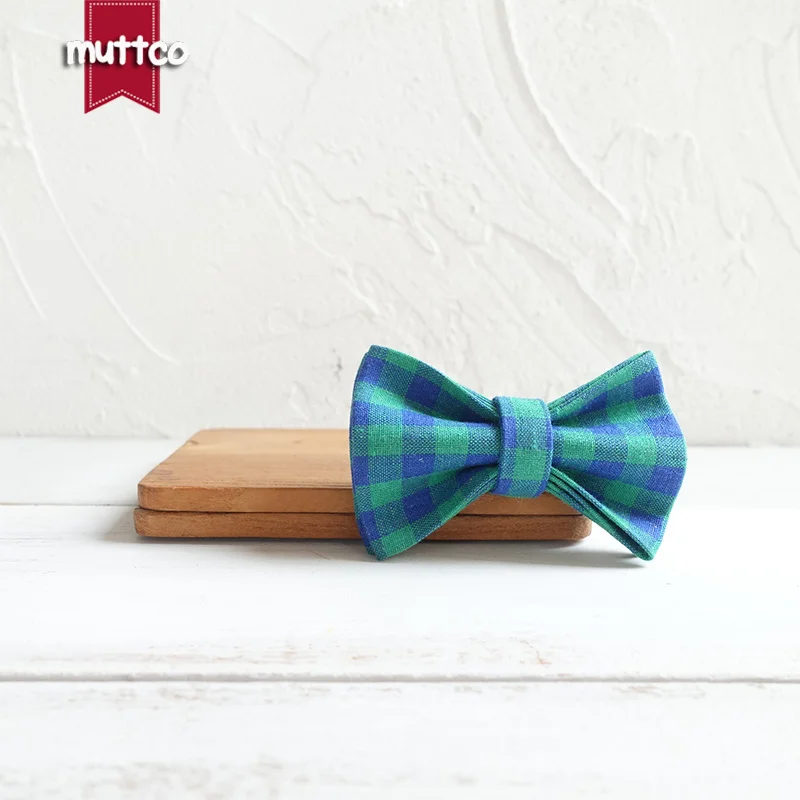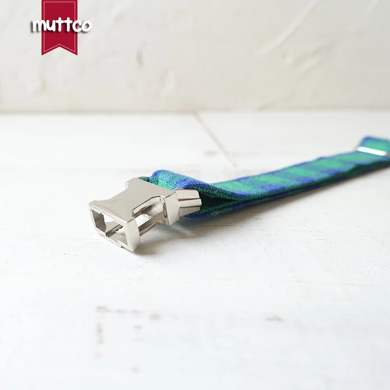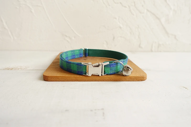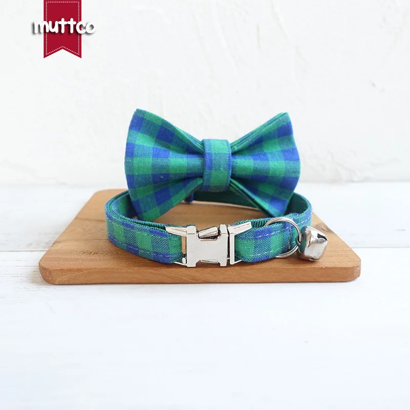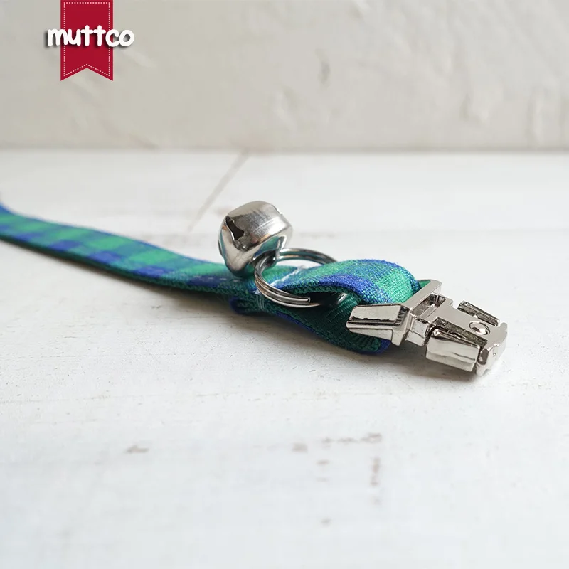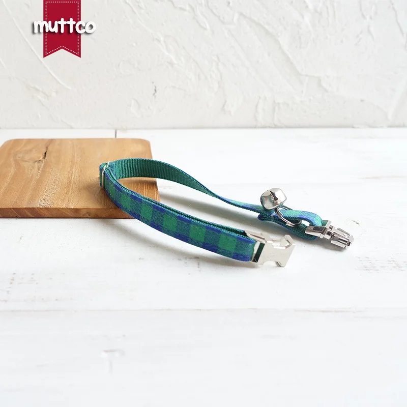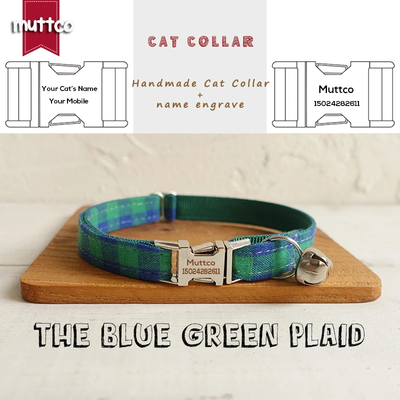 MUTTCO розничная продажа, ручная работа, гравировка, металлическая пряжка, воротник для кошки HE, Синий Зеленый Клетчатый мягкий воротник для котят, товары для домашних животных, 2 размера UCC073