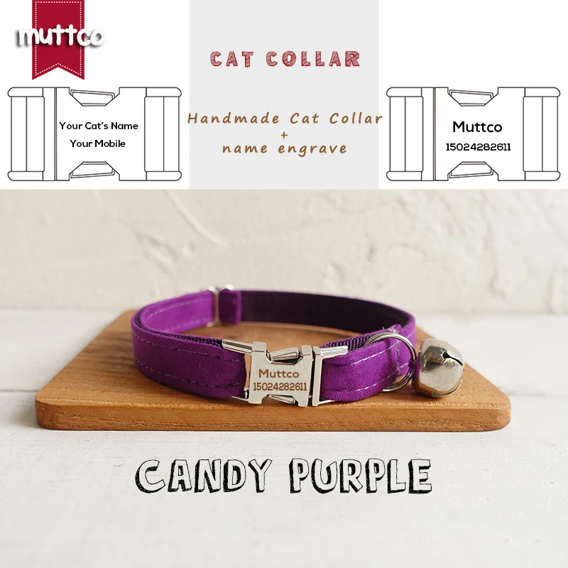 MUTTCOРозничная продажа, ручная работа, с гравировкой, металлическая пряжка, кошачий воротник, карамельный фиолетовый поли сатин и нейлон, 2 размера, кошачий воротник, uc029