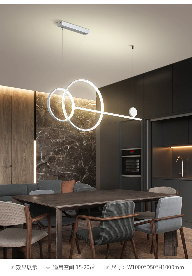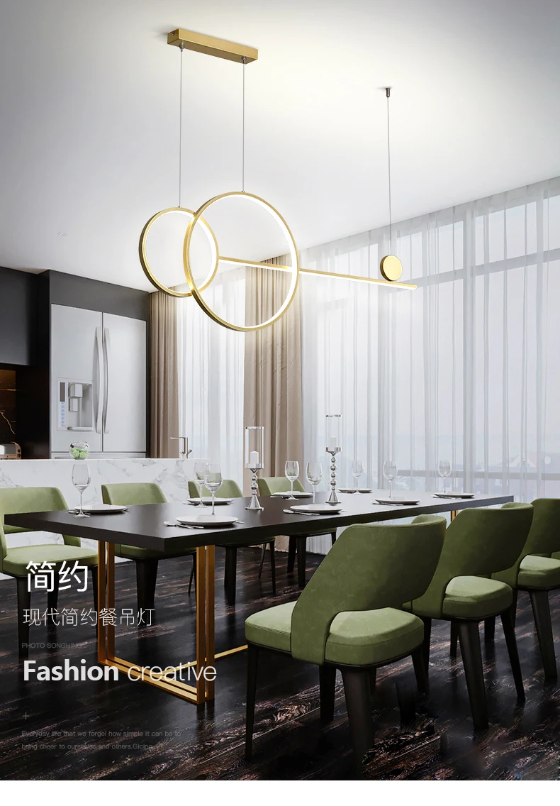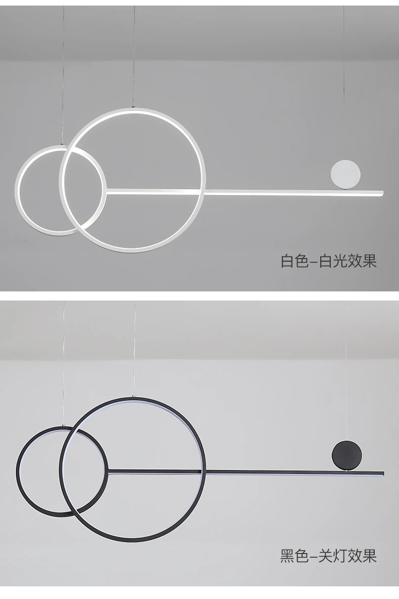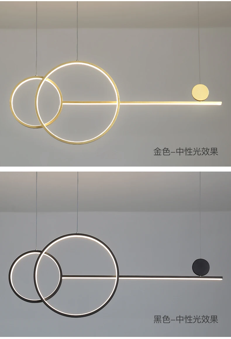 Светодиодный ная современная простая Люстра для ресторана, бара, черного, белого, золотого цветов, длинный подвесной светильник для столовой, кофейни, круглые кольца, подвесной светильник