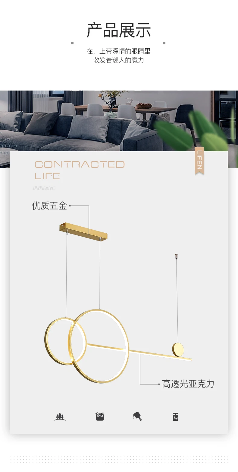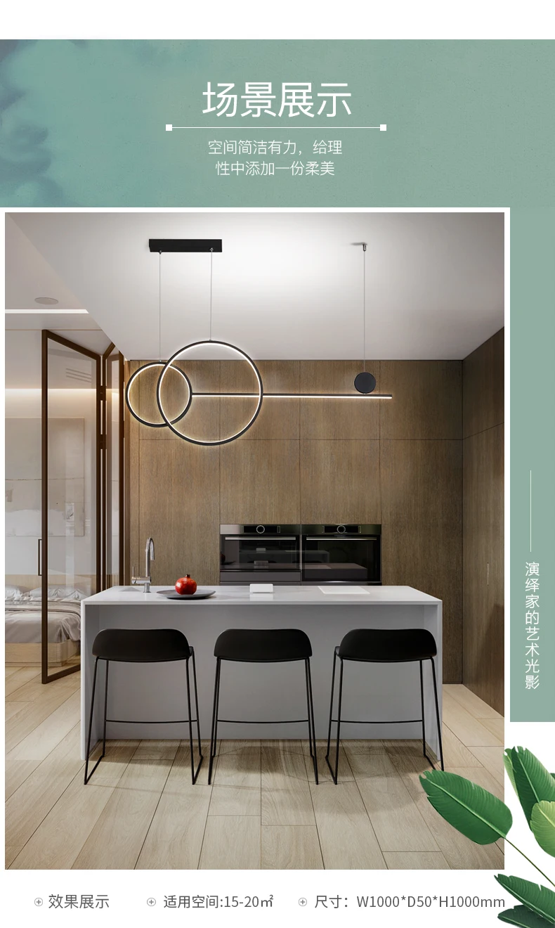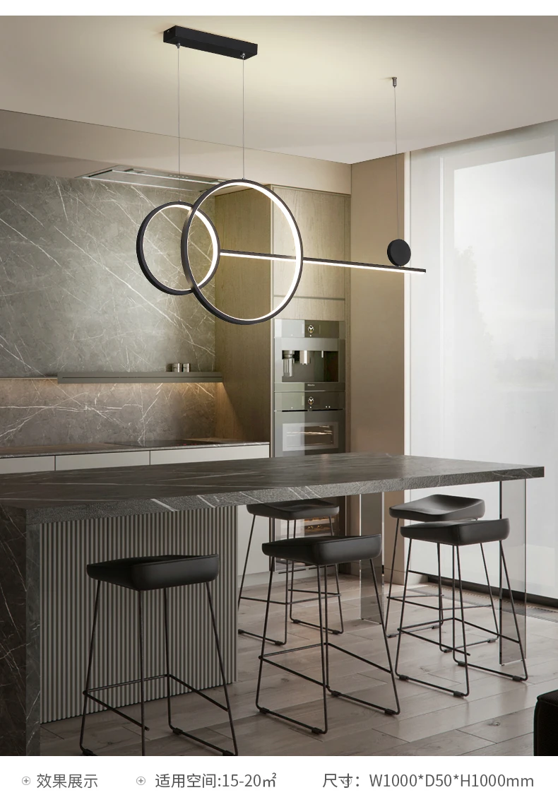 Светодиодный ная современная простая Люстра для ресторана, бара, черного, белого, золотого цветов, длинный подвесной светильник для столовой, кофейни, круглые кольца, подвесной светильник