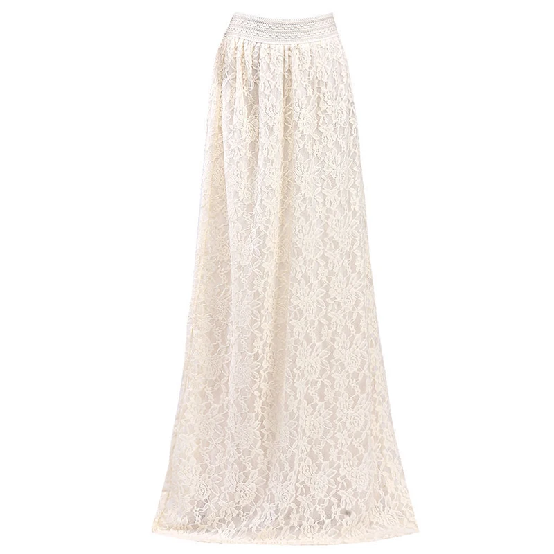 Женская кружевная юбка макси, длинная юбка из тюля с эластичной талией, элегантная кружевная бальная юбка подружки невесты, женские юбки