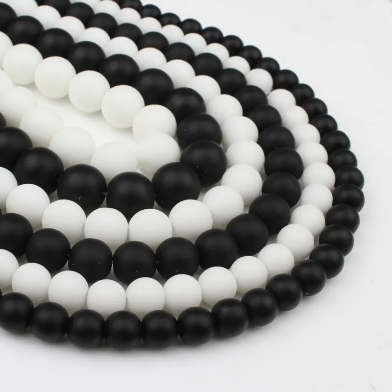 4681012 мм AAAA натуральный качественный черный и белый лак Матовый Агат оникса круглые бусины 15 "нитка выбрать размер для изготовления ювелирных изделий