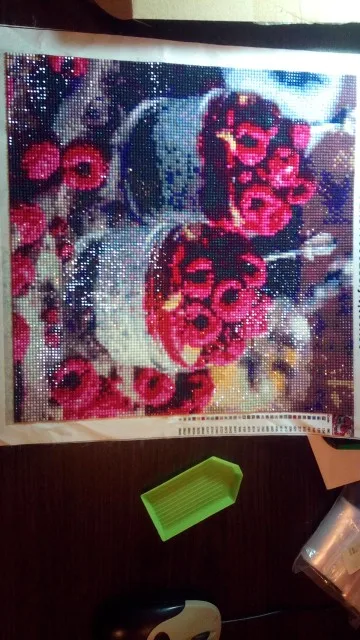 Картинки были намотаны на упаковке со стразами, конечно при транспортировке помялись. Вроде бы всё на месте. Пришли картинки быстро.