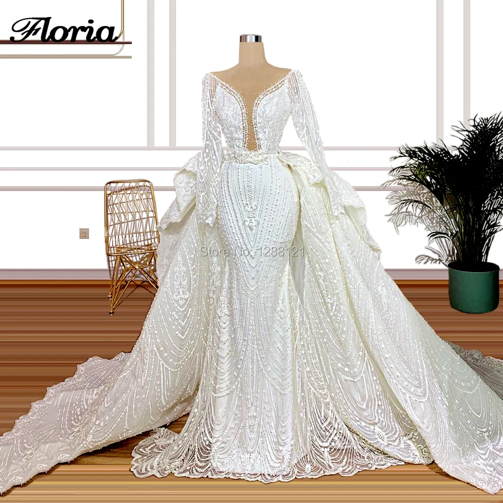 Романтические бусы, свадебное платье русалки, мусульманский Саудовский Аравийский стиль, с длинным рукавом, свадебные платья, индивидуальный заказ, кристаллы 2020