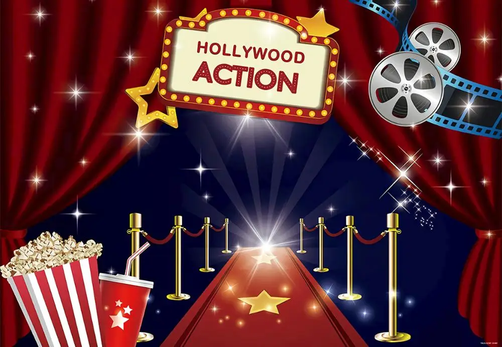 Каписко Голливуд вечерние фоны попкорн фильм ночь день рождения фон красный ковер знаменитости баннер фото Декор студия реквизит