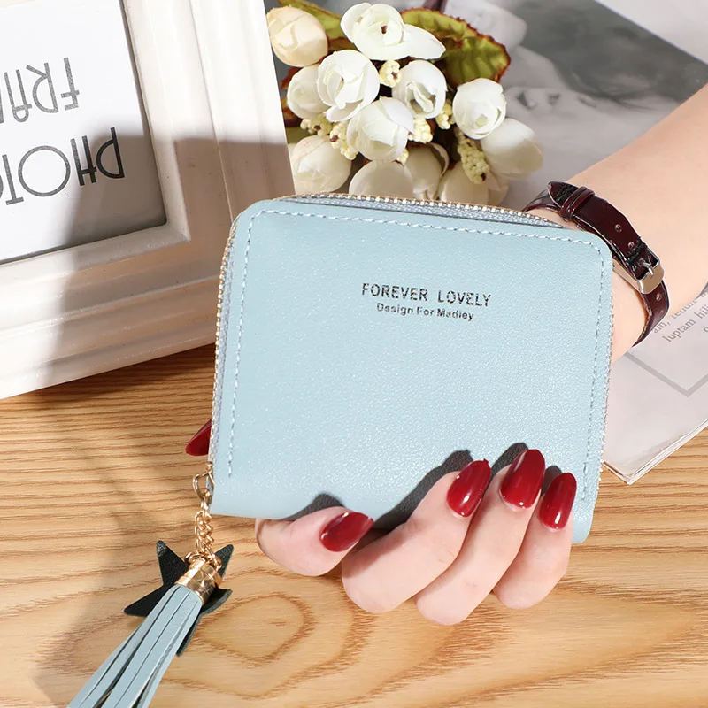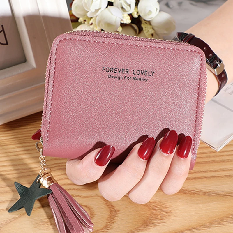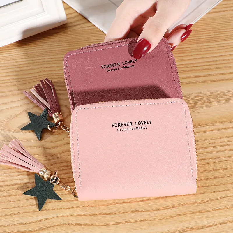 Женский кошелек, милый короткий кошелек с кисточкой и подвеской для студентов, трендовый Маленький модный кошелек из искусственной кожи, кошелек для мелочи, женская сумка для карт для женщин, 2021